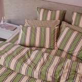 Sleep soundly with Mosey Me's Carnival Stripe Pillowcase Set. Woven from 100% combed cotton for a soft texture, this pillowcase set features a multi-width stripe design of pistachio, salmon and pastel pink. Designed to pair easily with a variety of different prints, colours and styles, it's an easy way to update your bedroom.