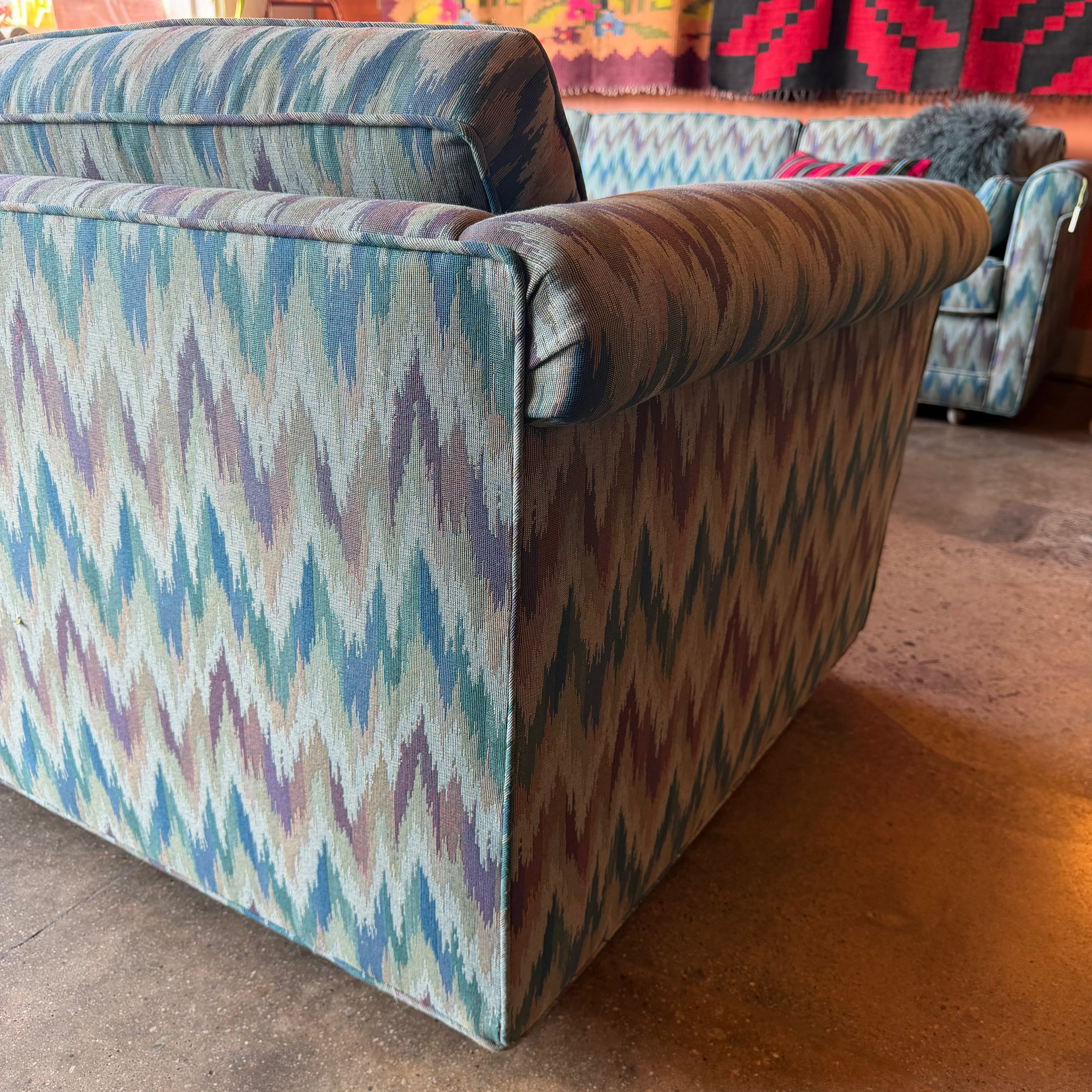 1960's Vintage Abstract Flame Stitch Fabric Sofas - 2 Available