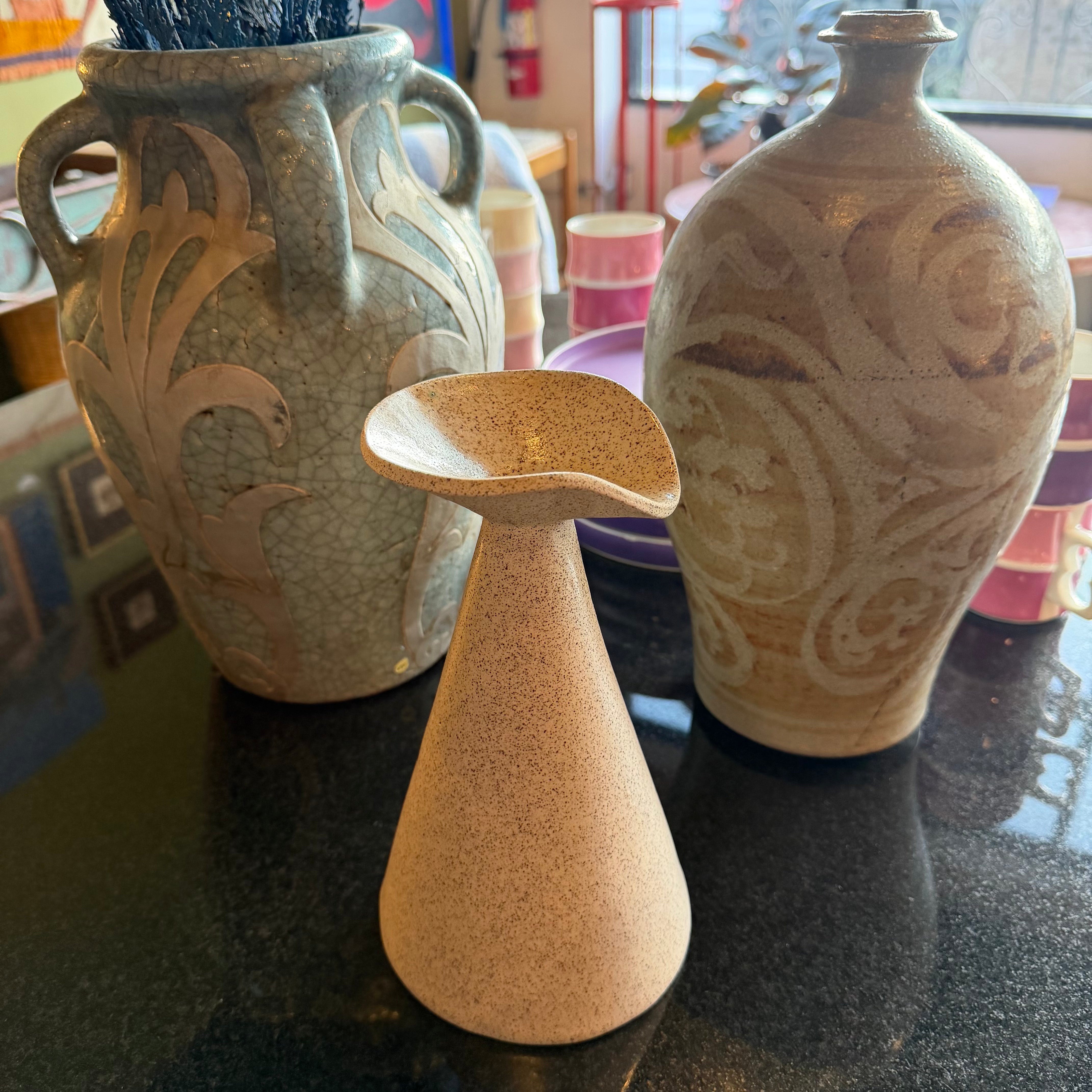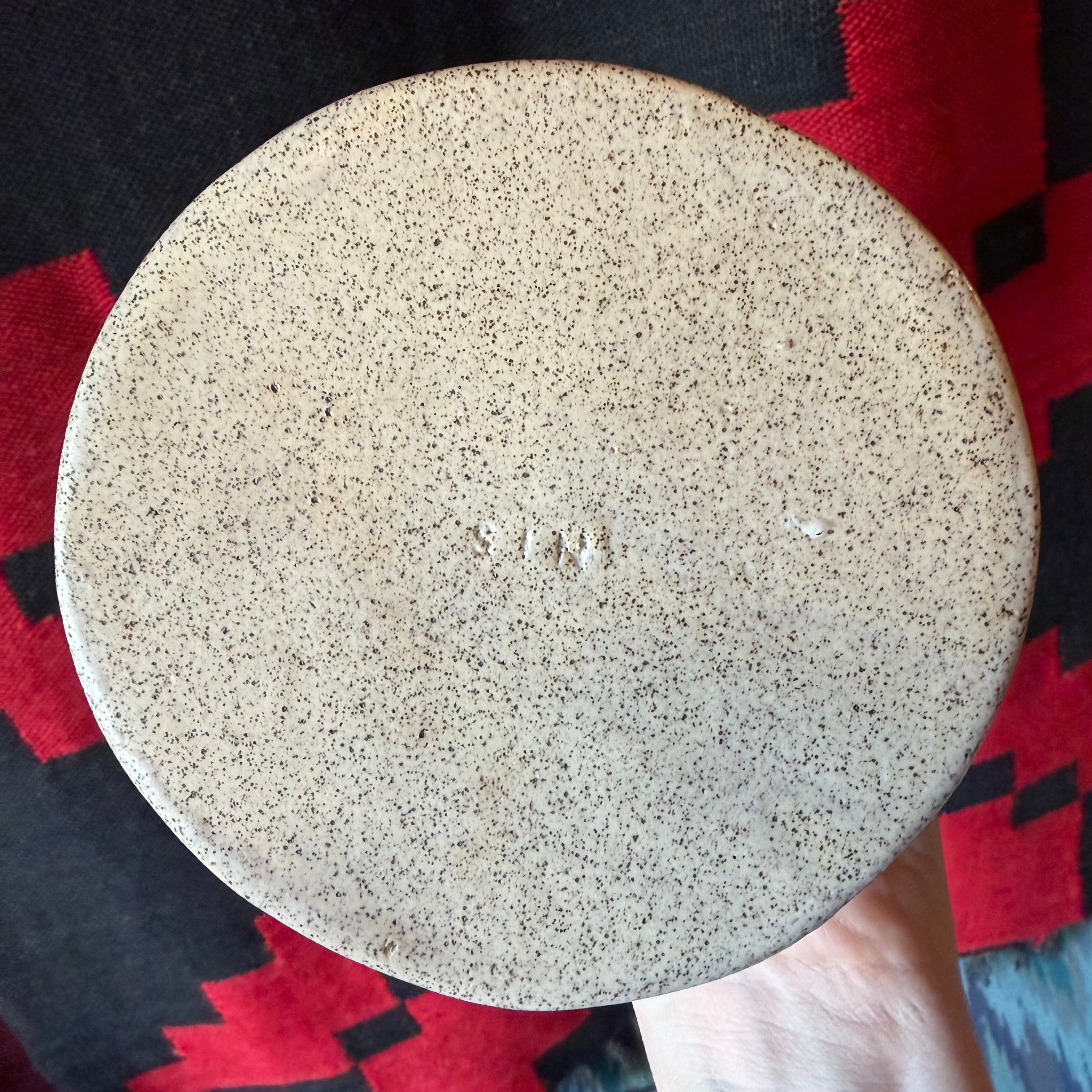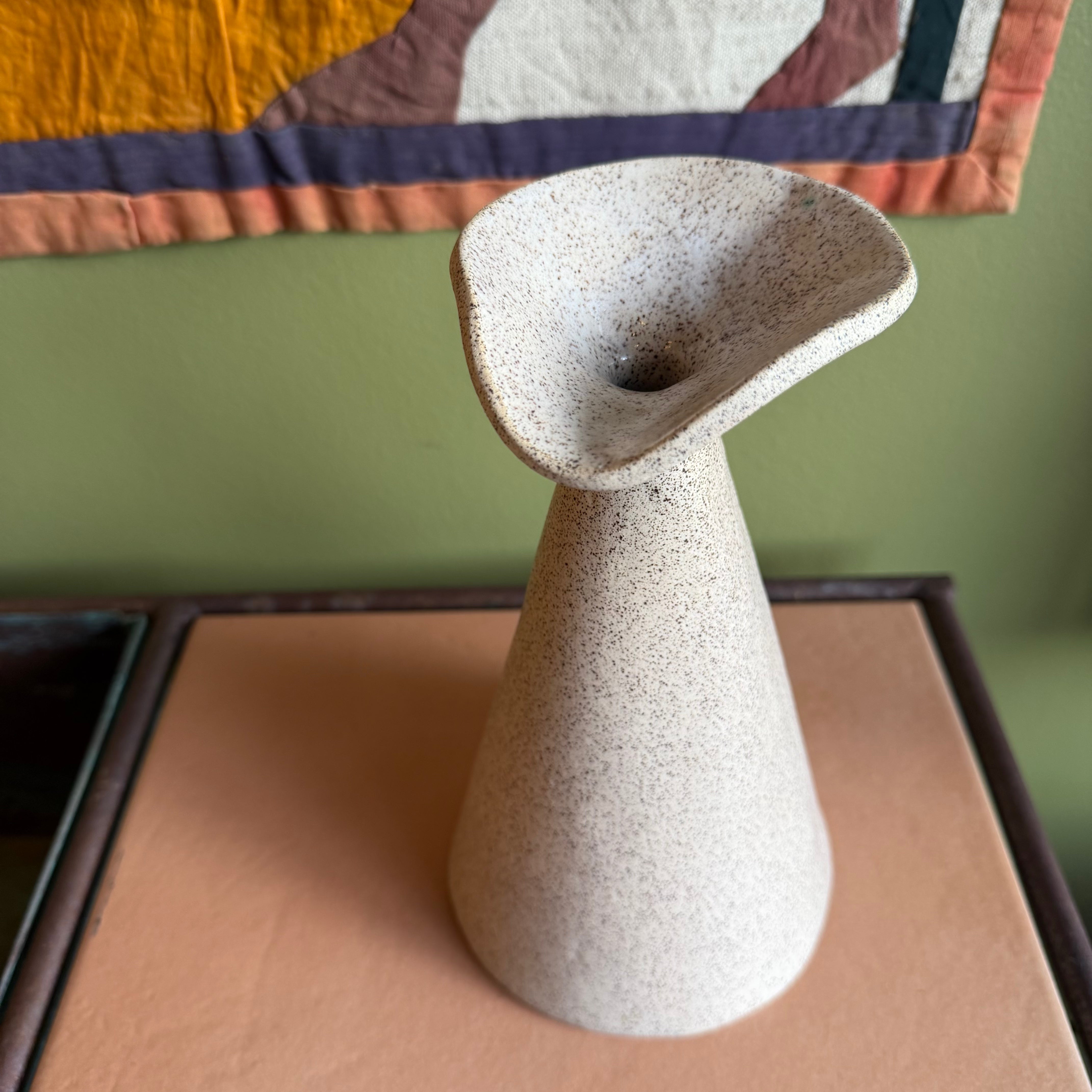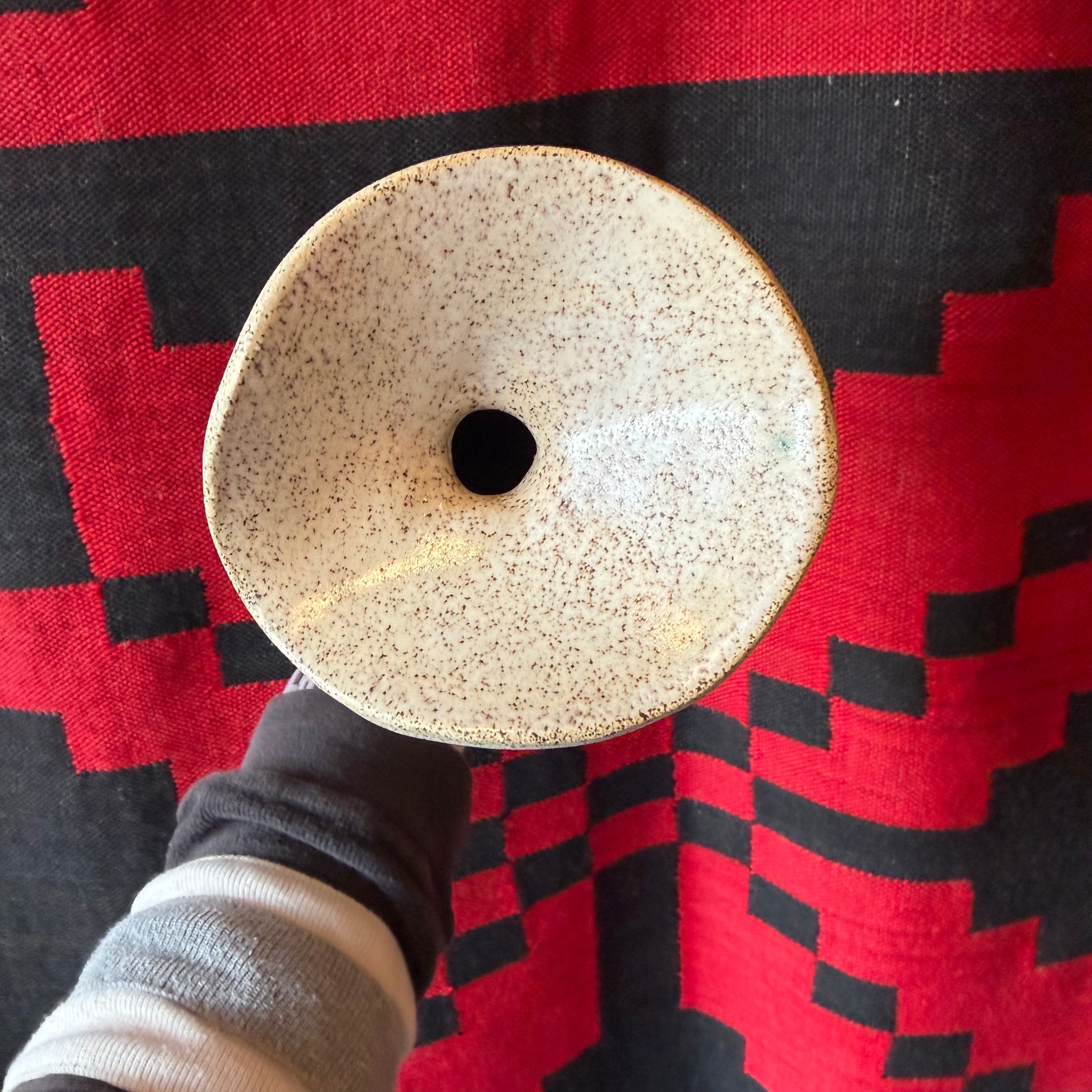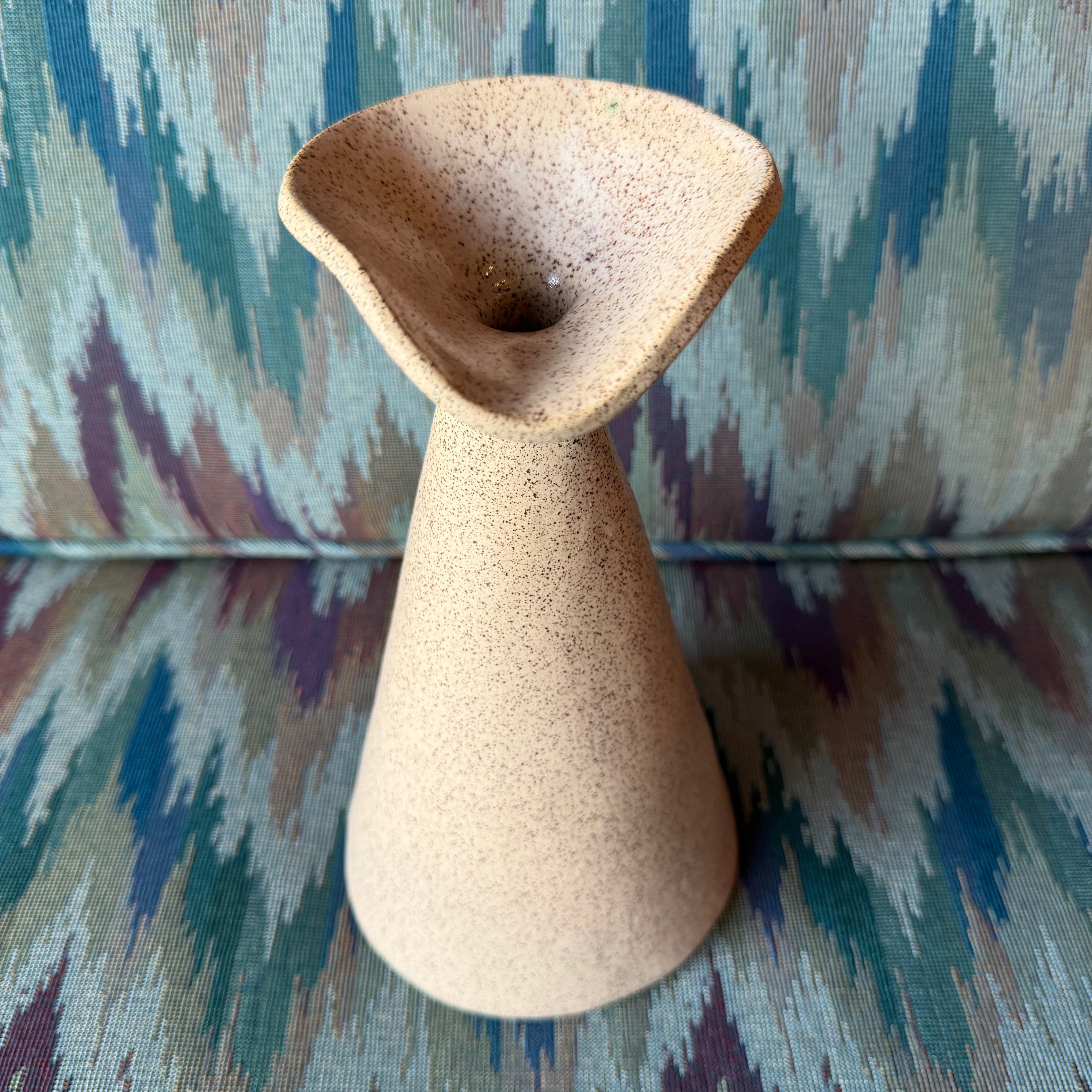 Natural cream studio pottery vase circa 1970's-80's. Clear glaze finish and small top opening... great for a few cut flowers or reeds.