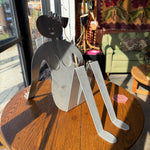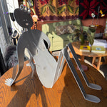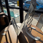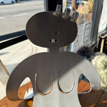 Steel Lady Magazine Rack, designed by Fred Garbotz for Rockledge Design Studio in the USA circa the '90s. Handmade + rare postmodern sculpture in lightweight brushed aluminum.