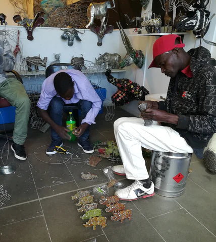 These delightful beaded animals are made from recycled wire and beads, all hand twisted and strung by Godfrey and his team.
