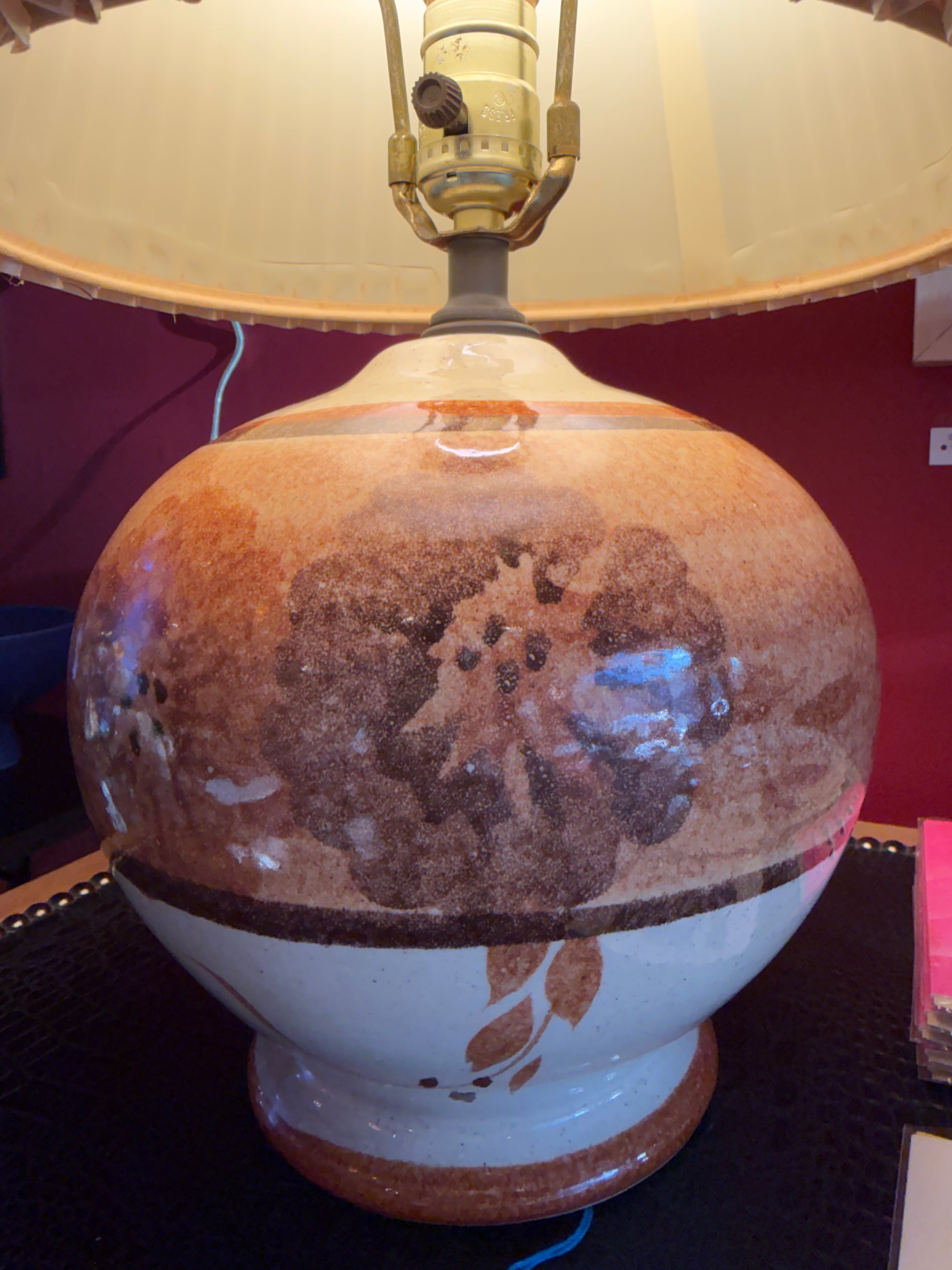 Beautiful 70's ceramic lamp handpainted in a floral motif.
