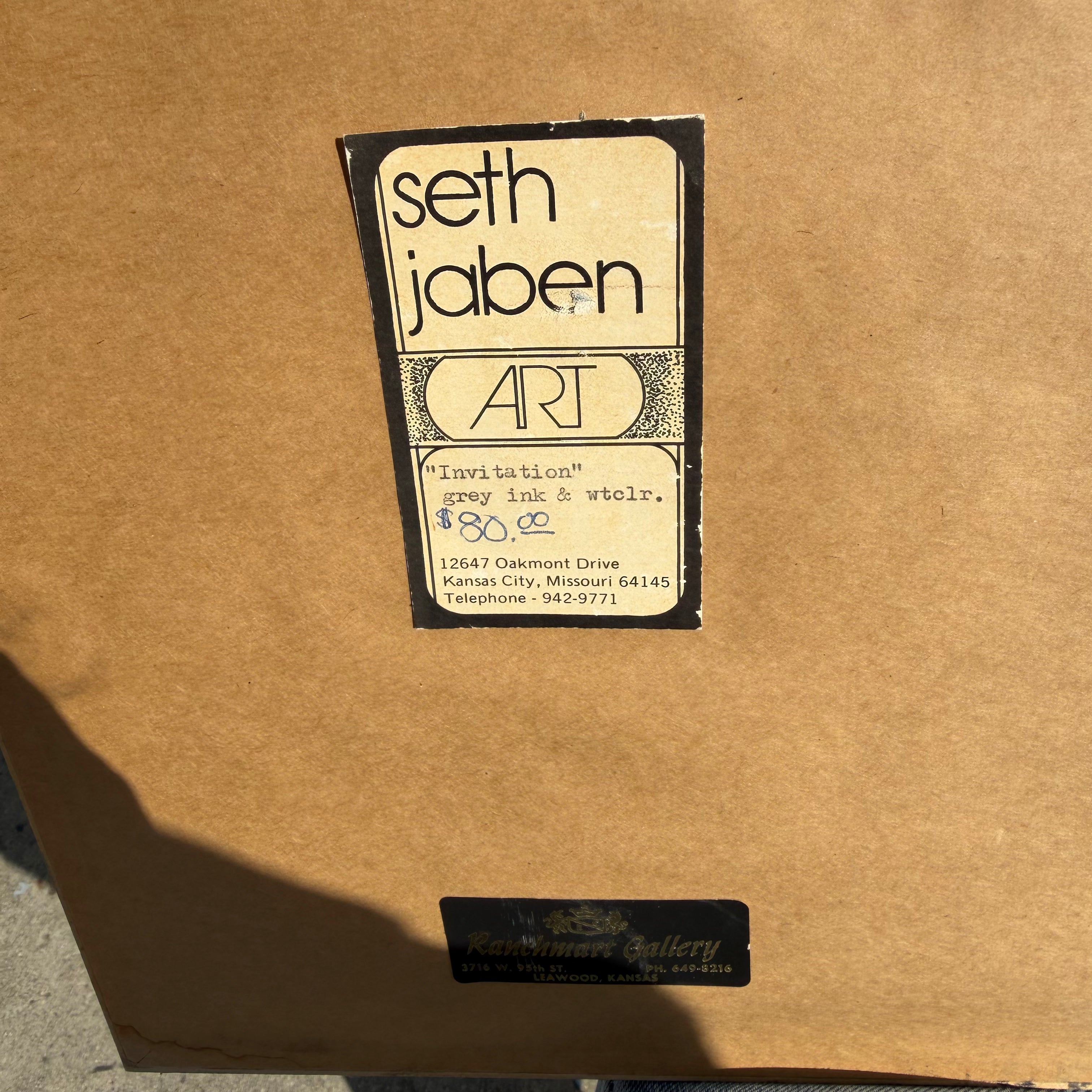 1970's "Invitation" Framed Watercolor + Ink by Seth Jabin