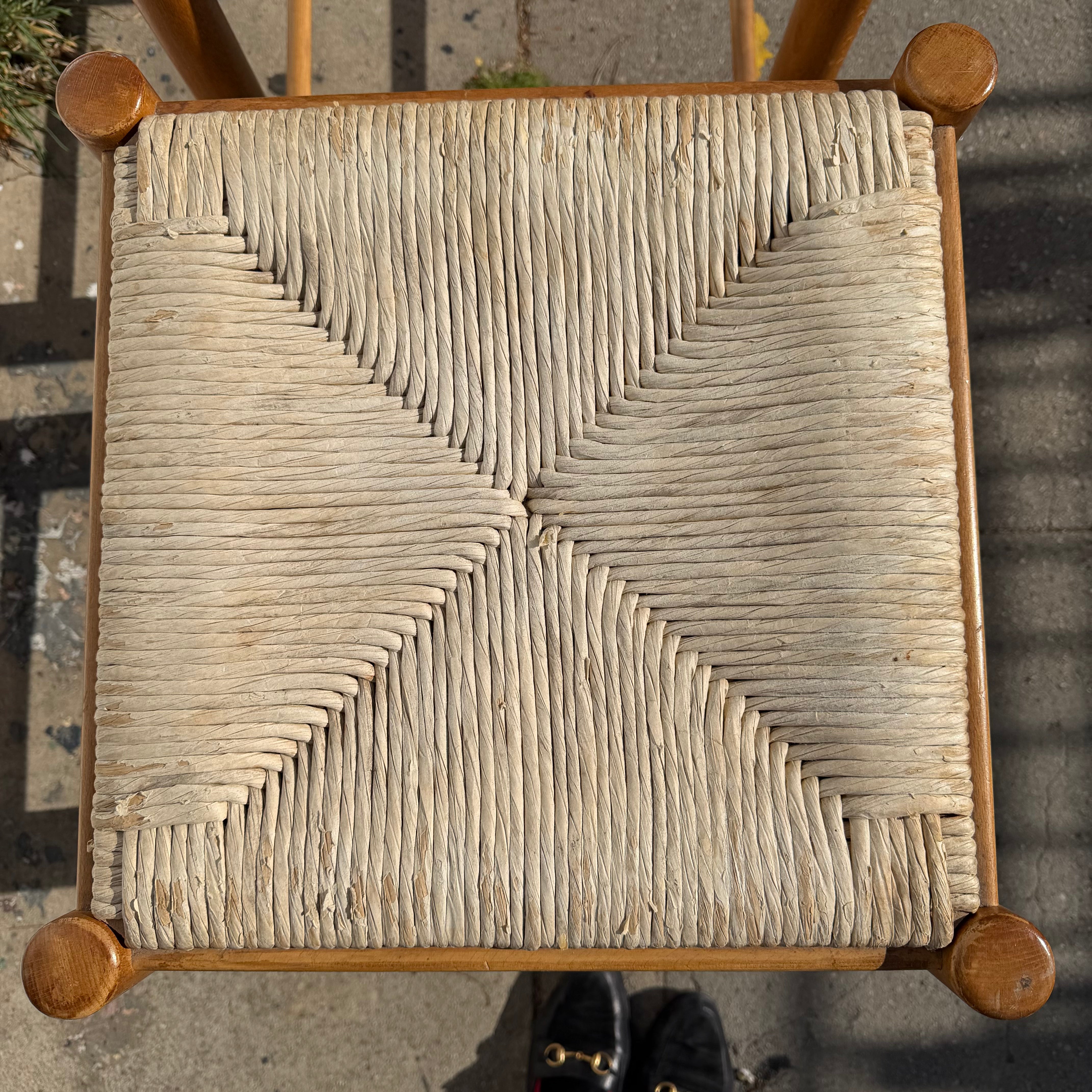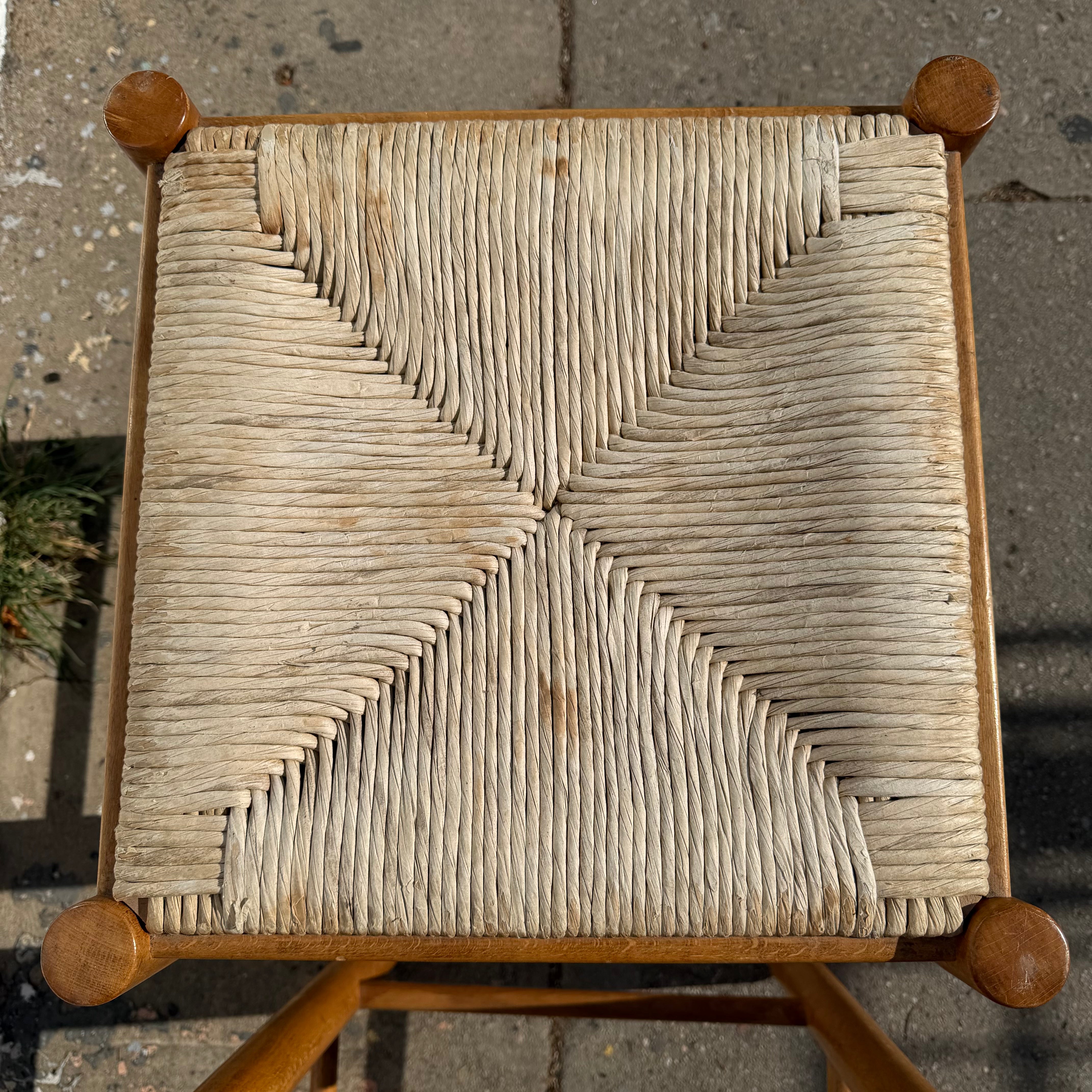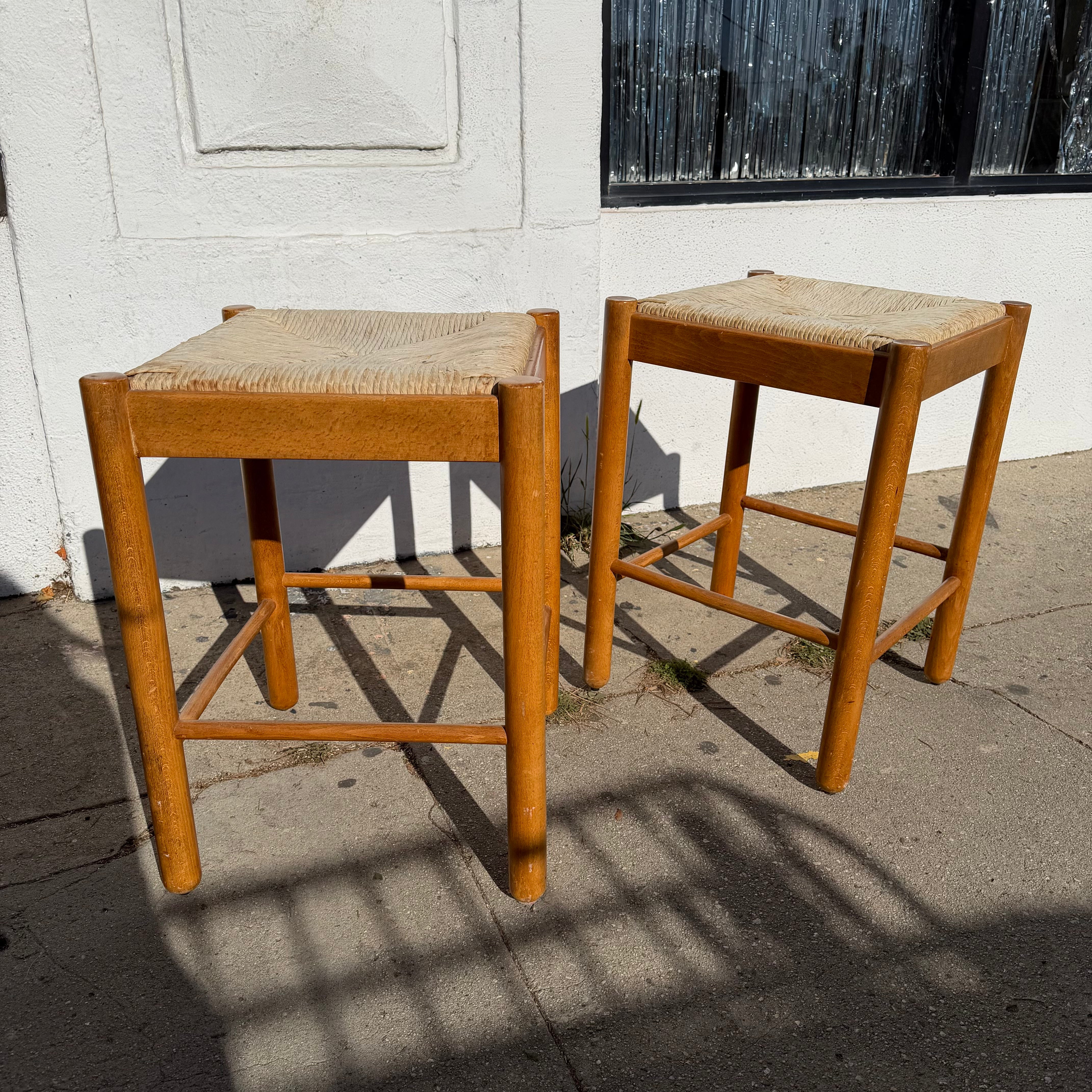 1970's Rattan + Oak Counter Stools - A Pair