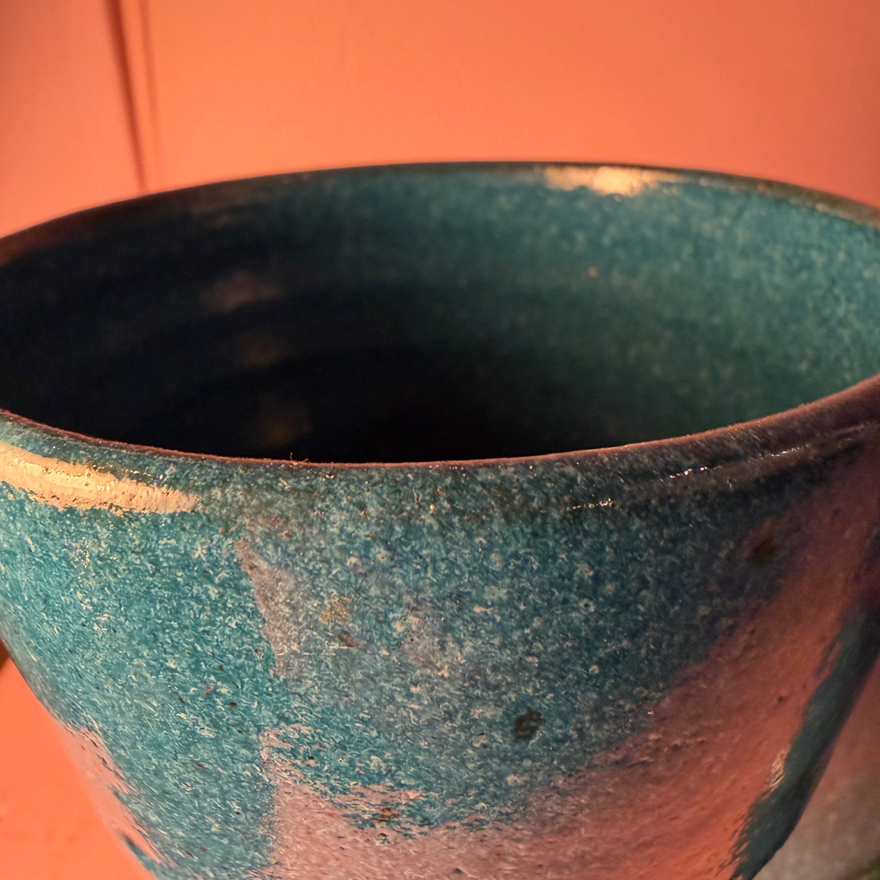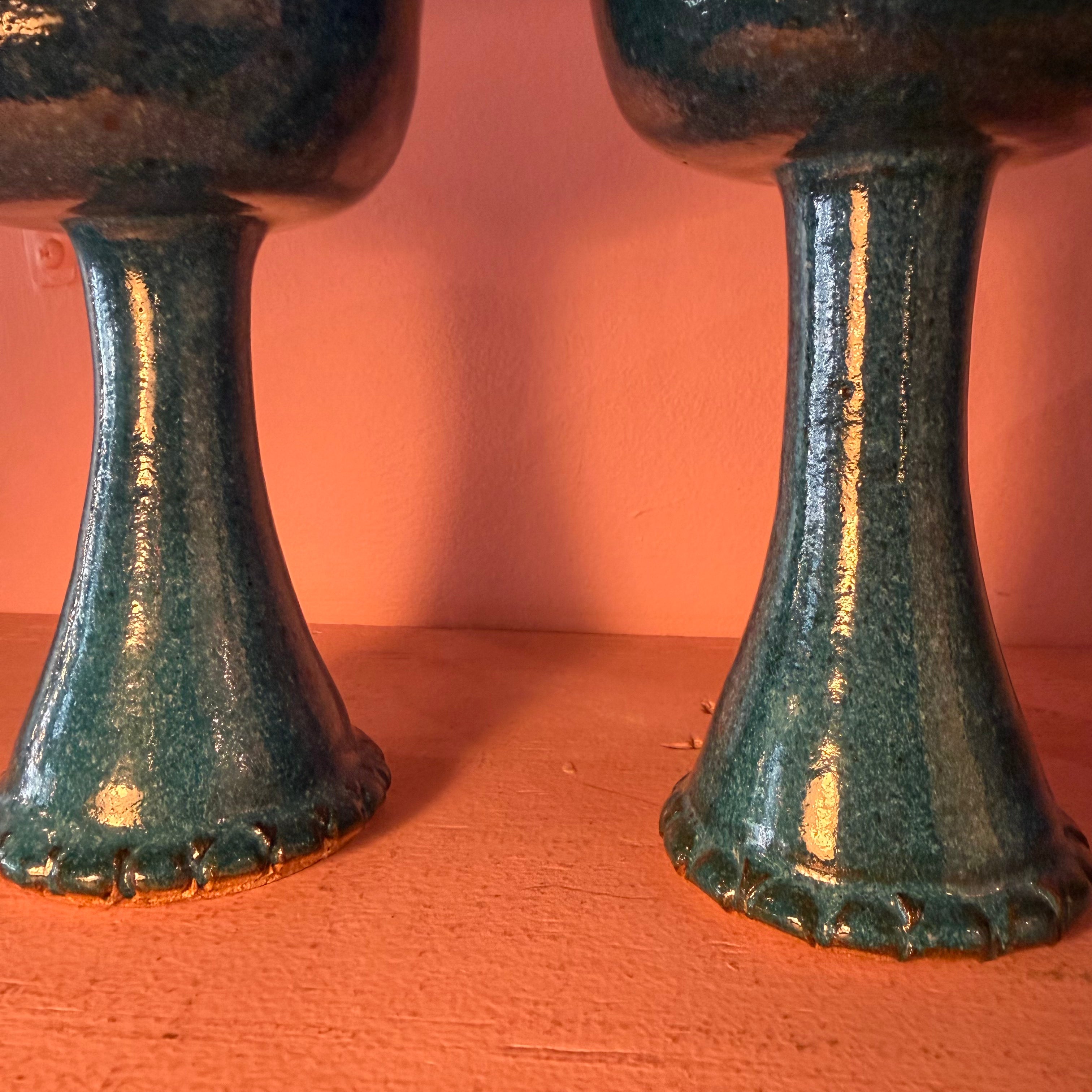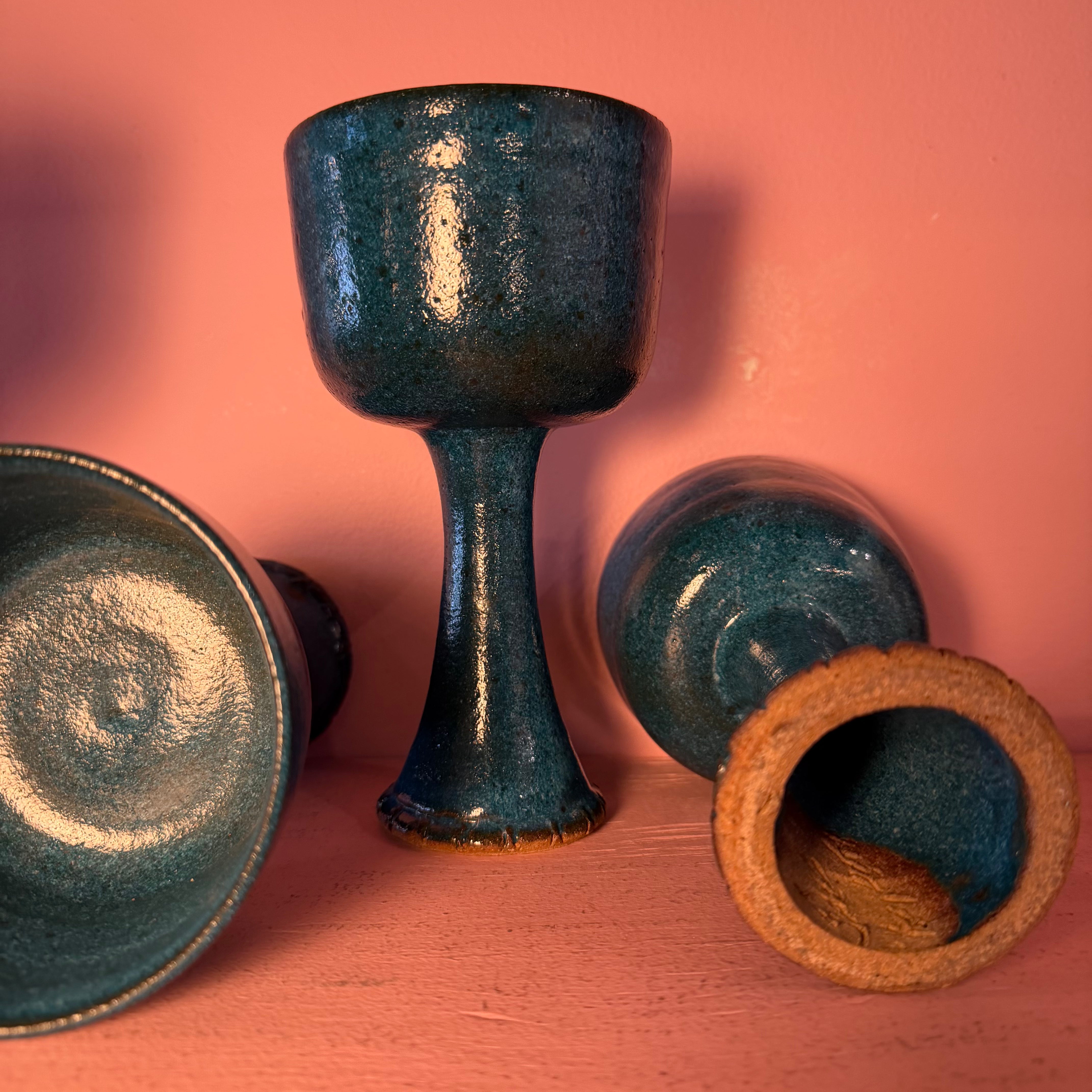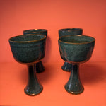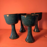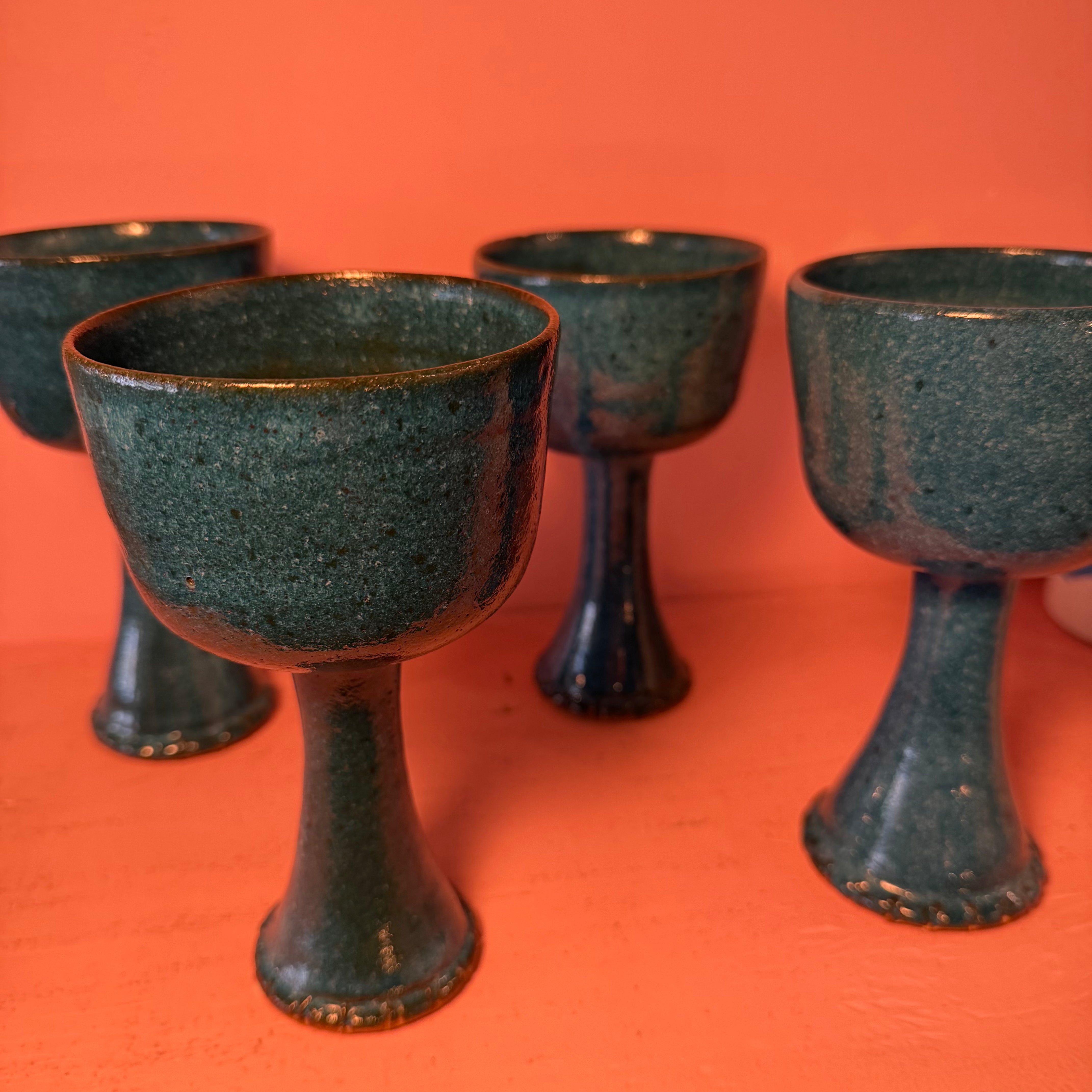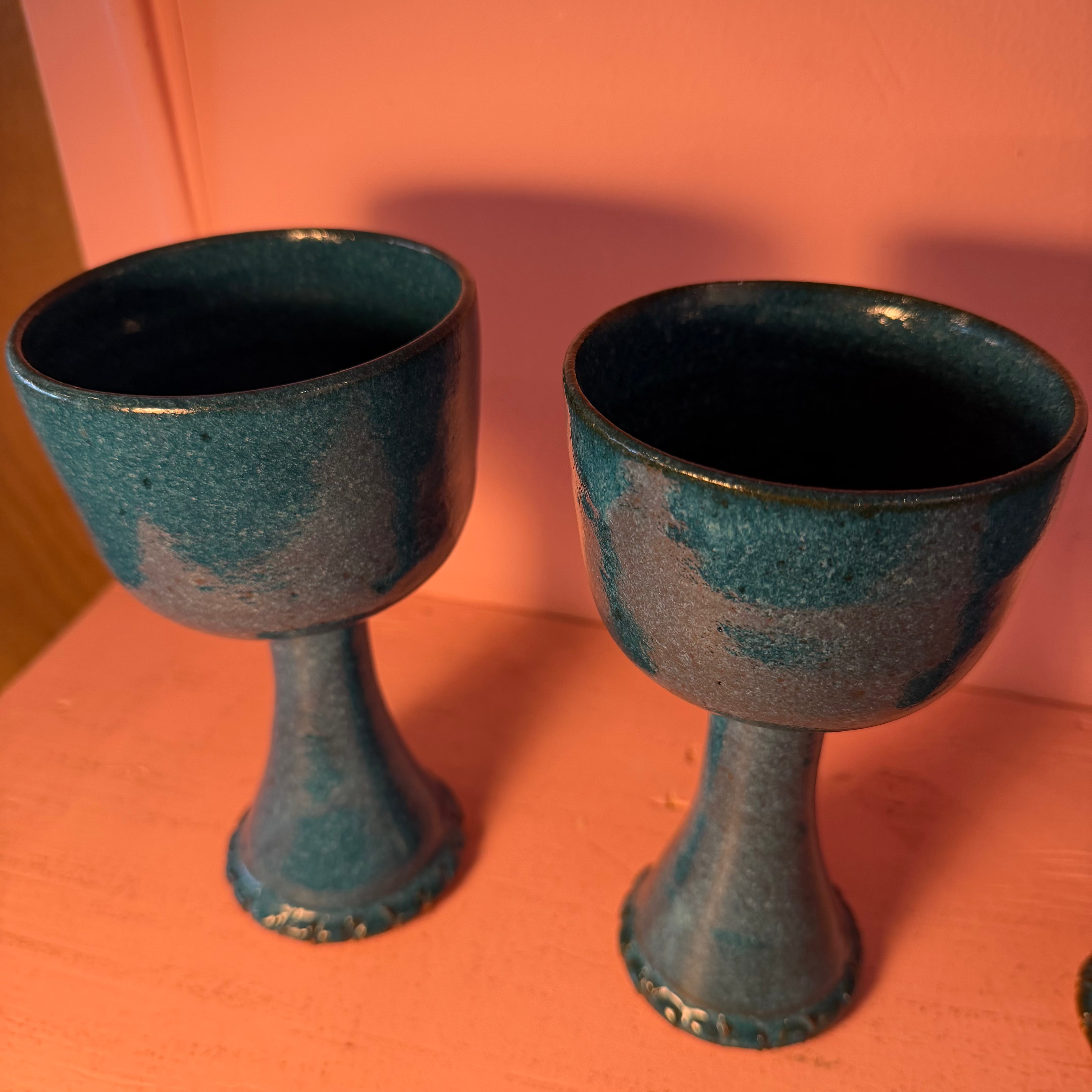 Gorgeous blue earthenware wine glasses from the 1970's... each hand made and one of a kind so sizing varies.