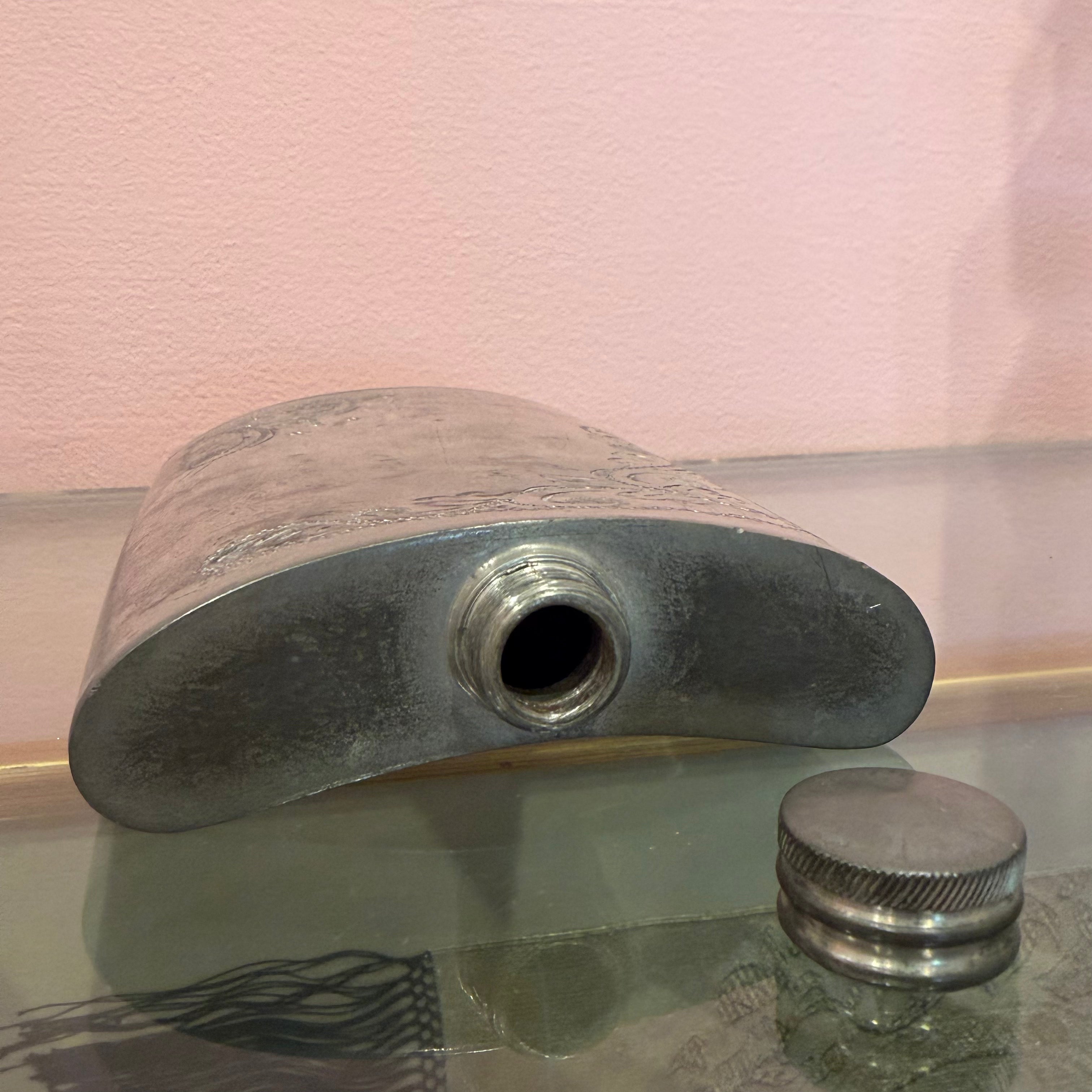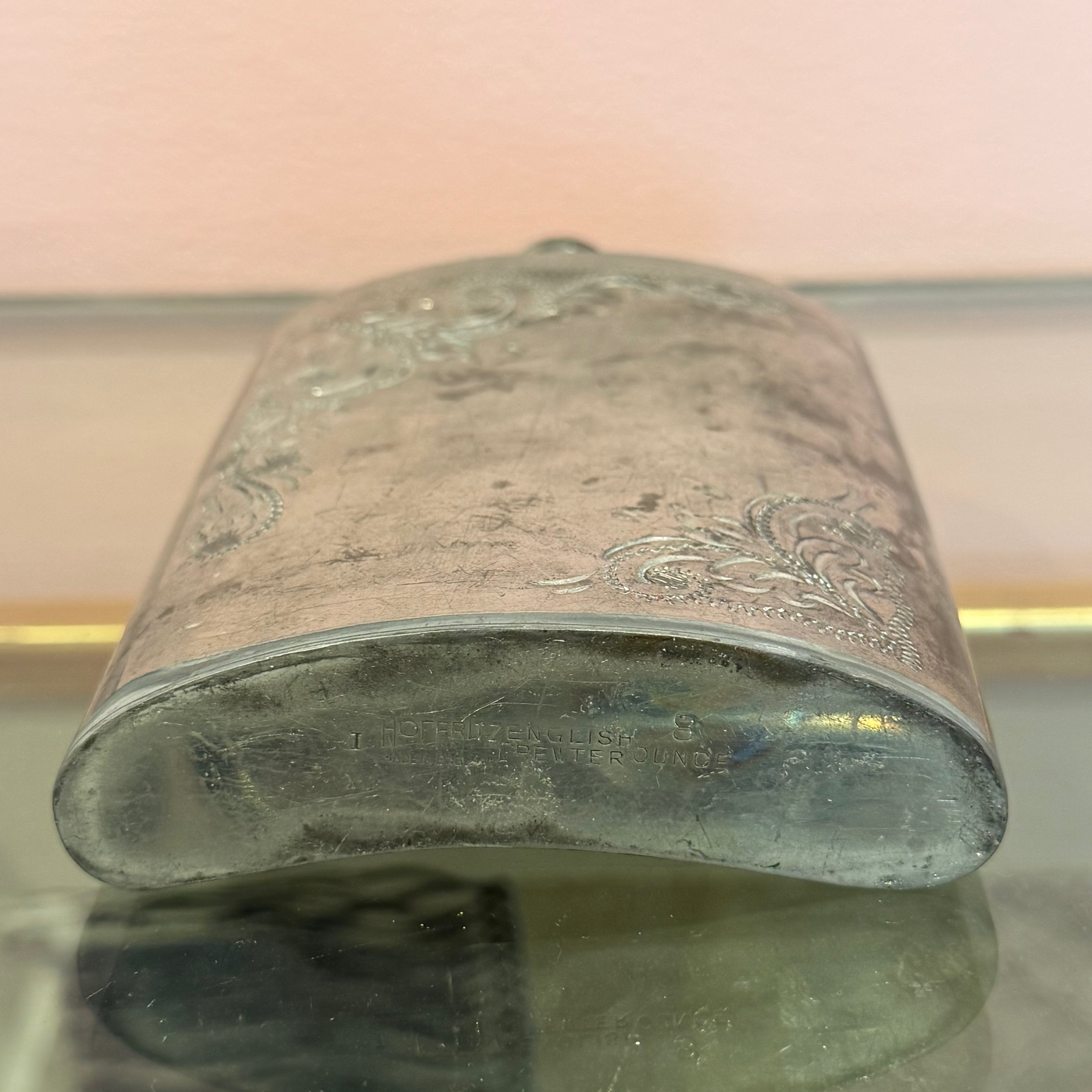 Vintage Engraved Pewter 8 oz. Flask by Hoffritz of England