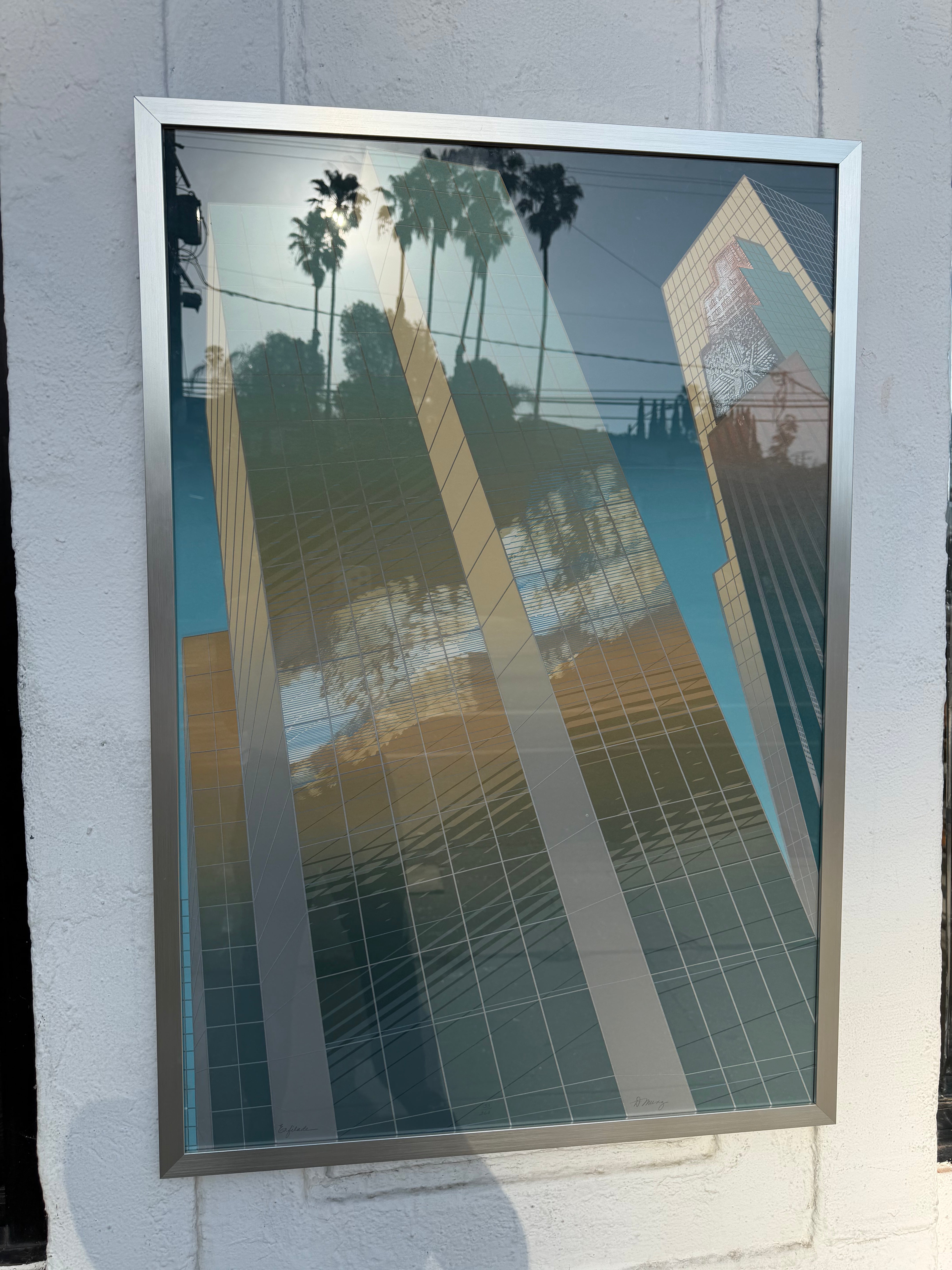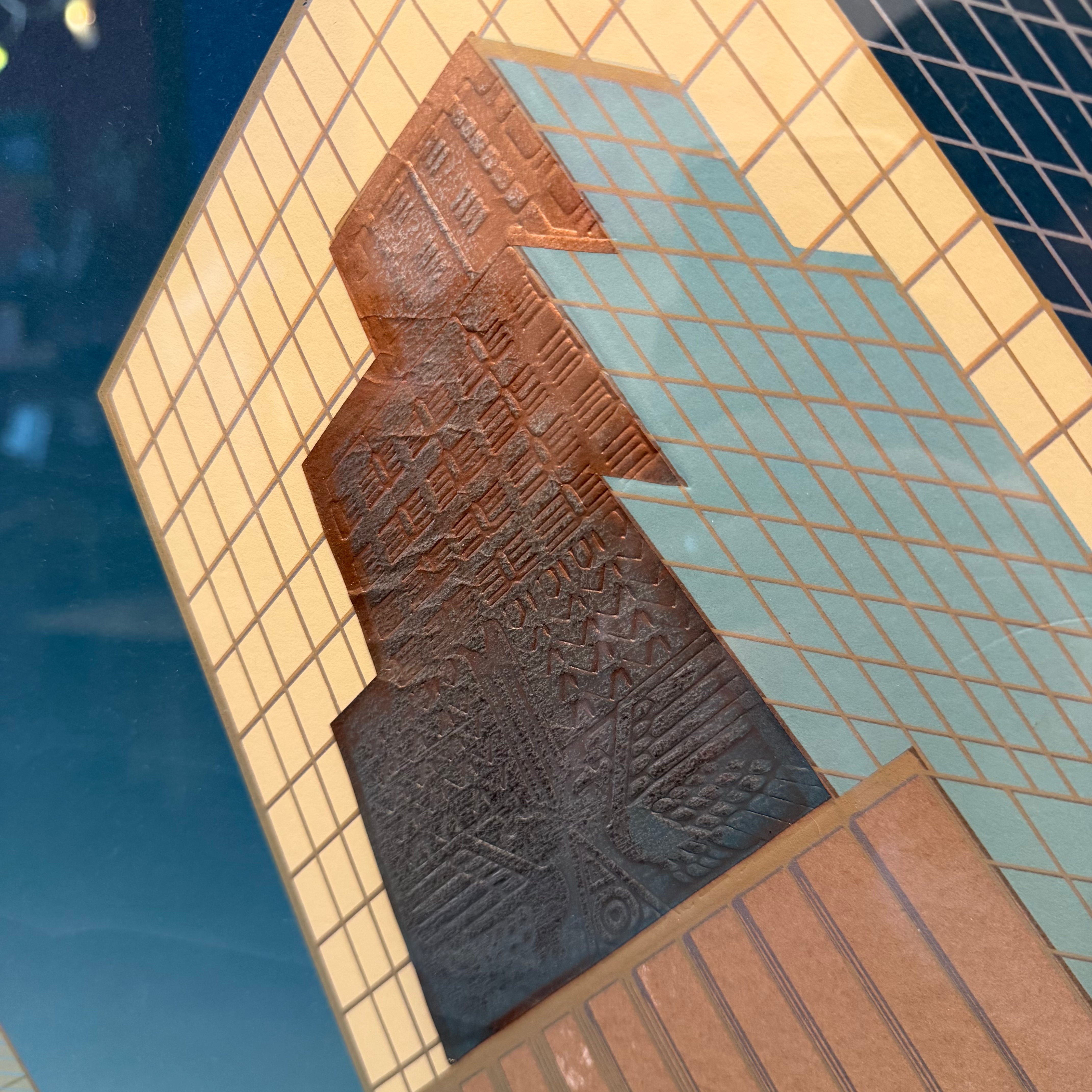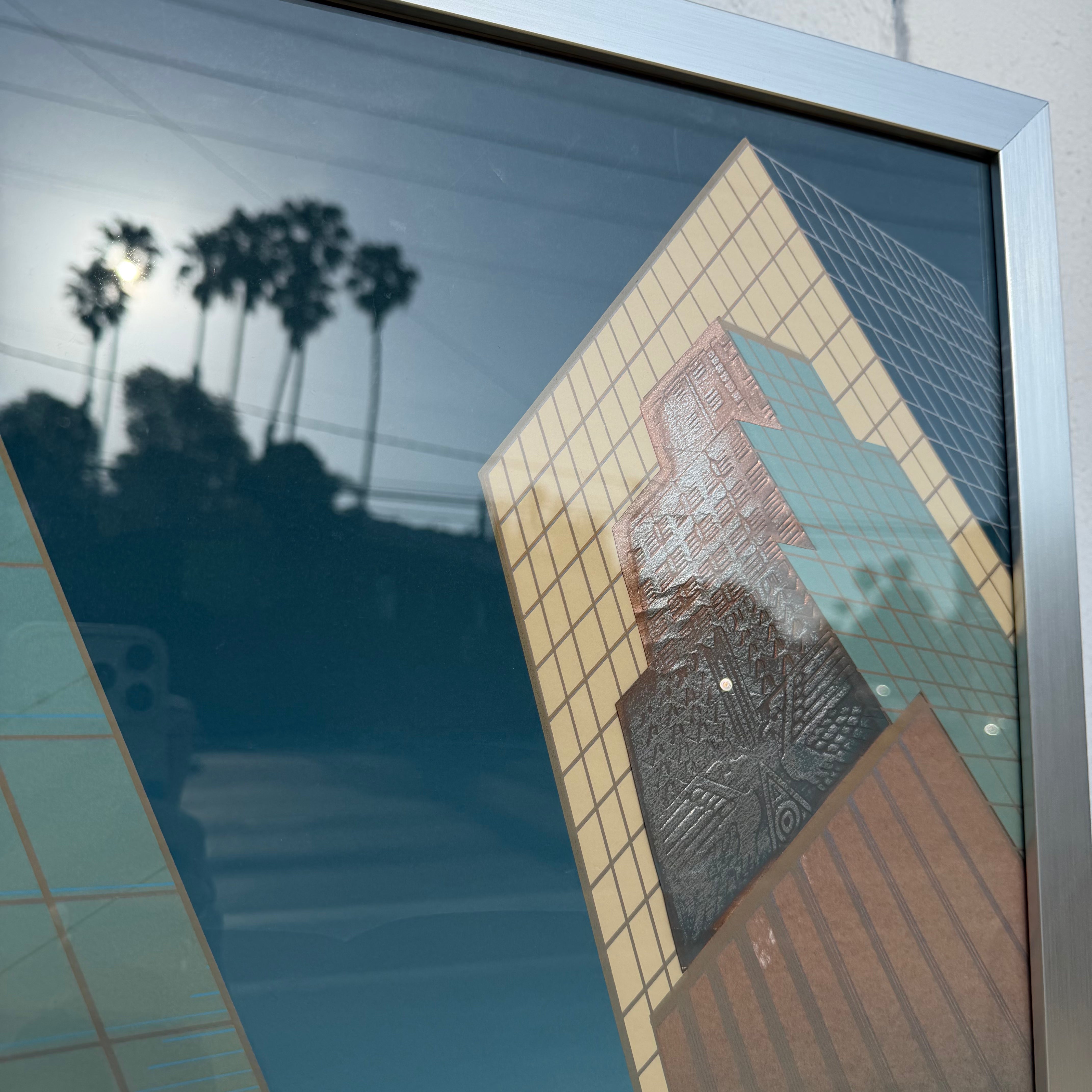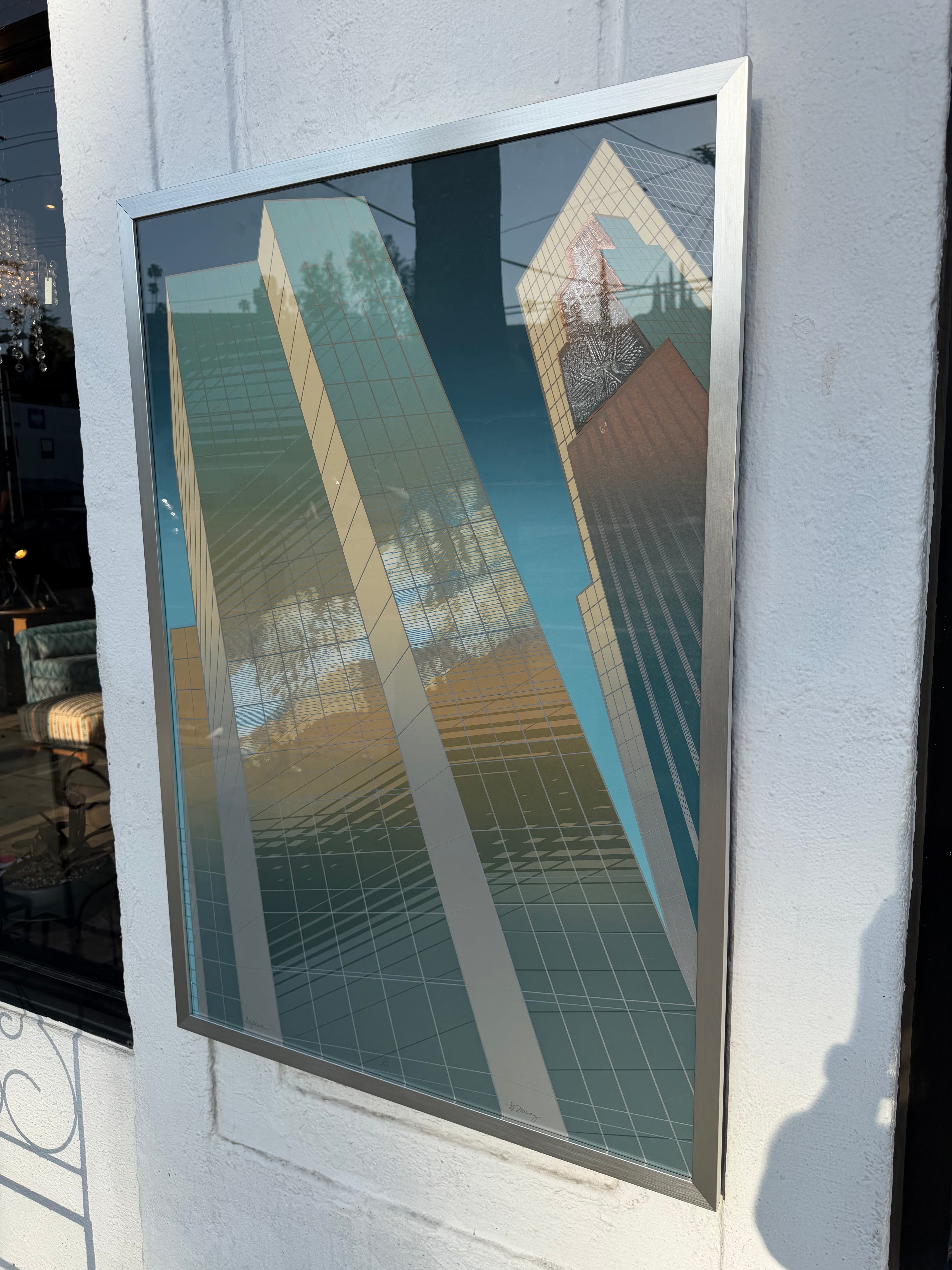 Epic Oversized Skyscraper Cityscape Serigraph with embossed details, made in '94 by Don Munz.