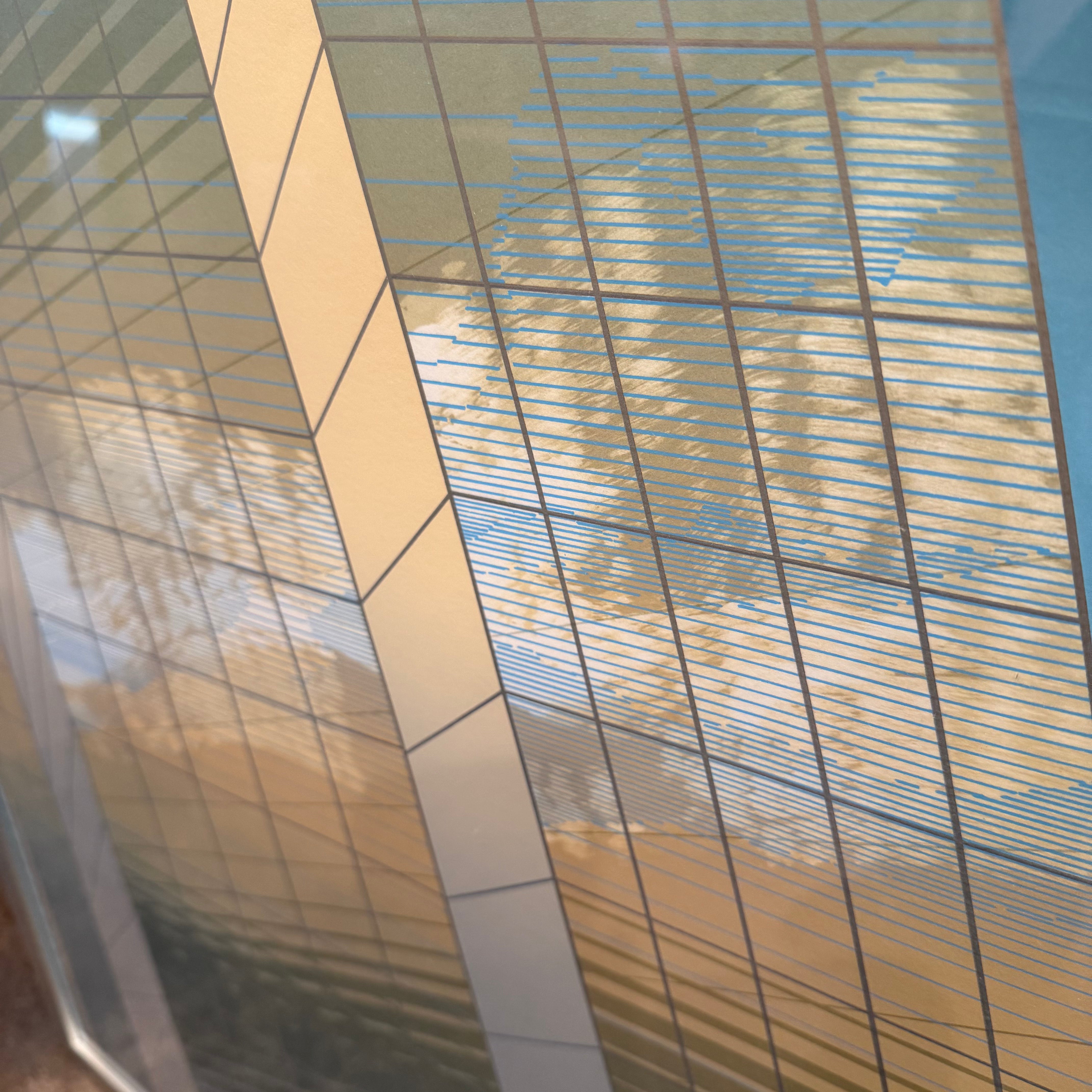A very special piece with incredible detailing throughout... the gradient of the sky, the clouds reflecting off the building faces, the Aztec embossing details... a collector's piece to cherish.