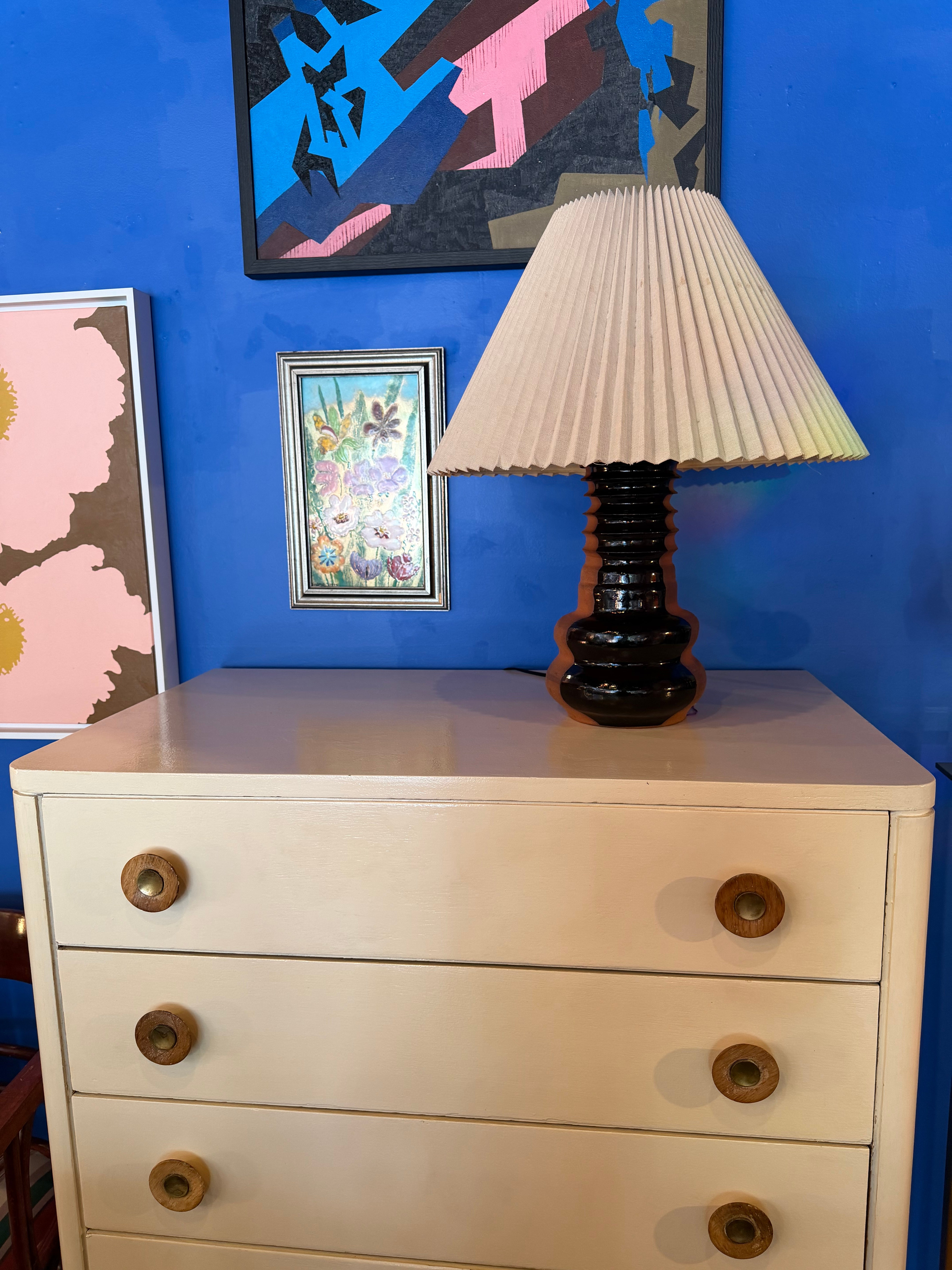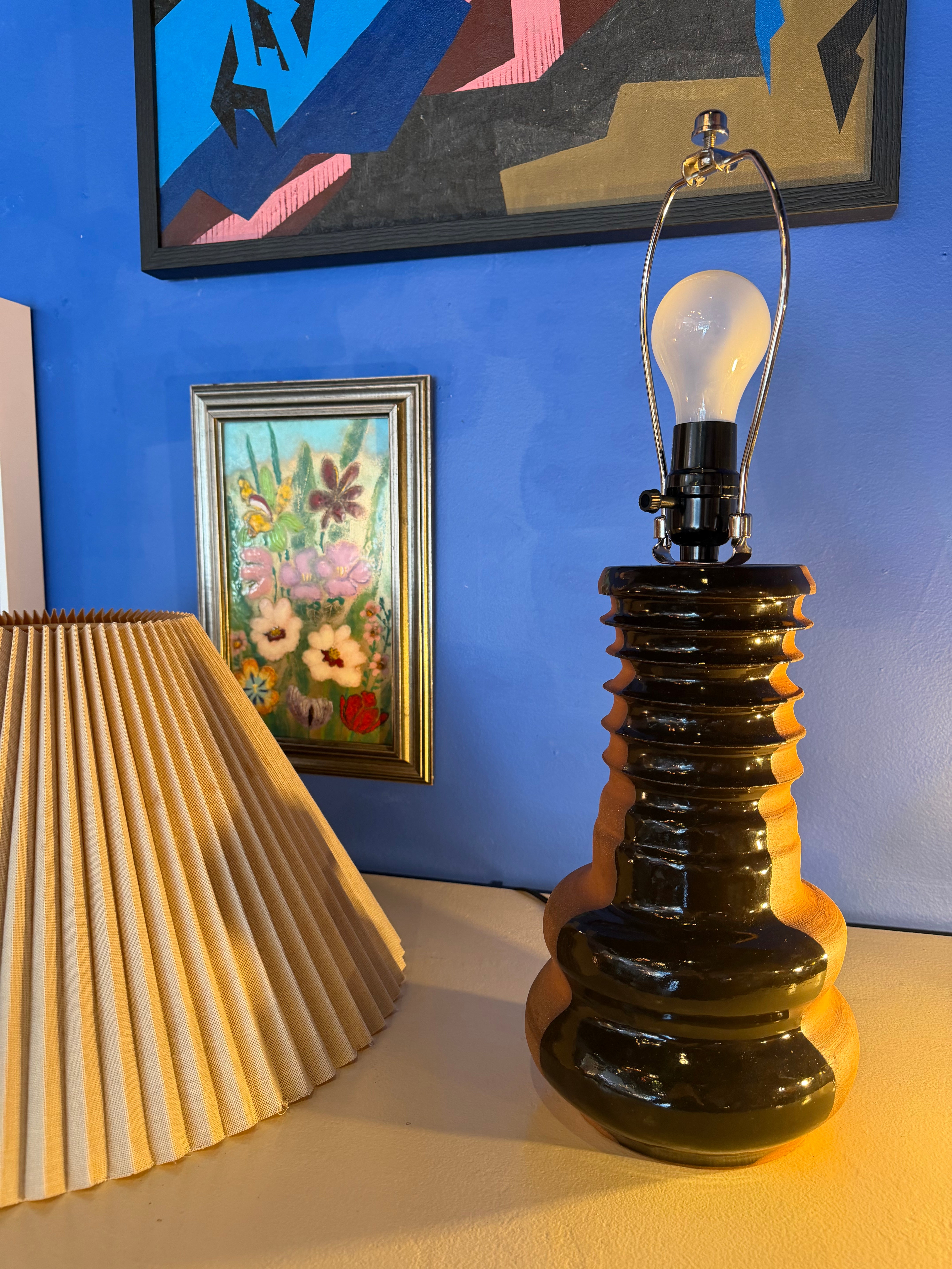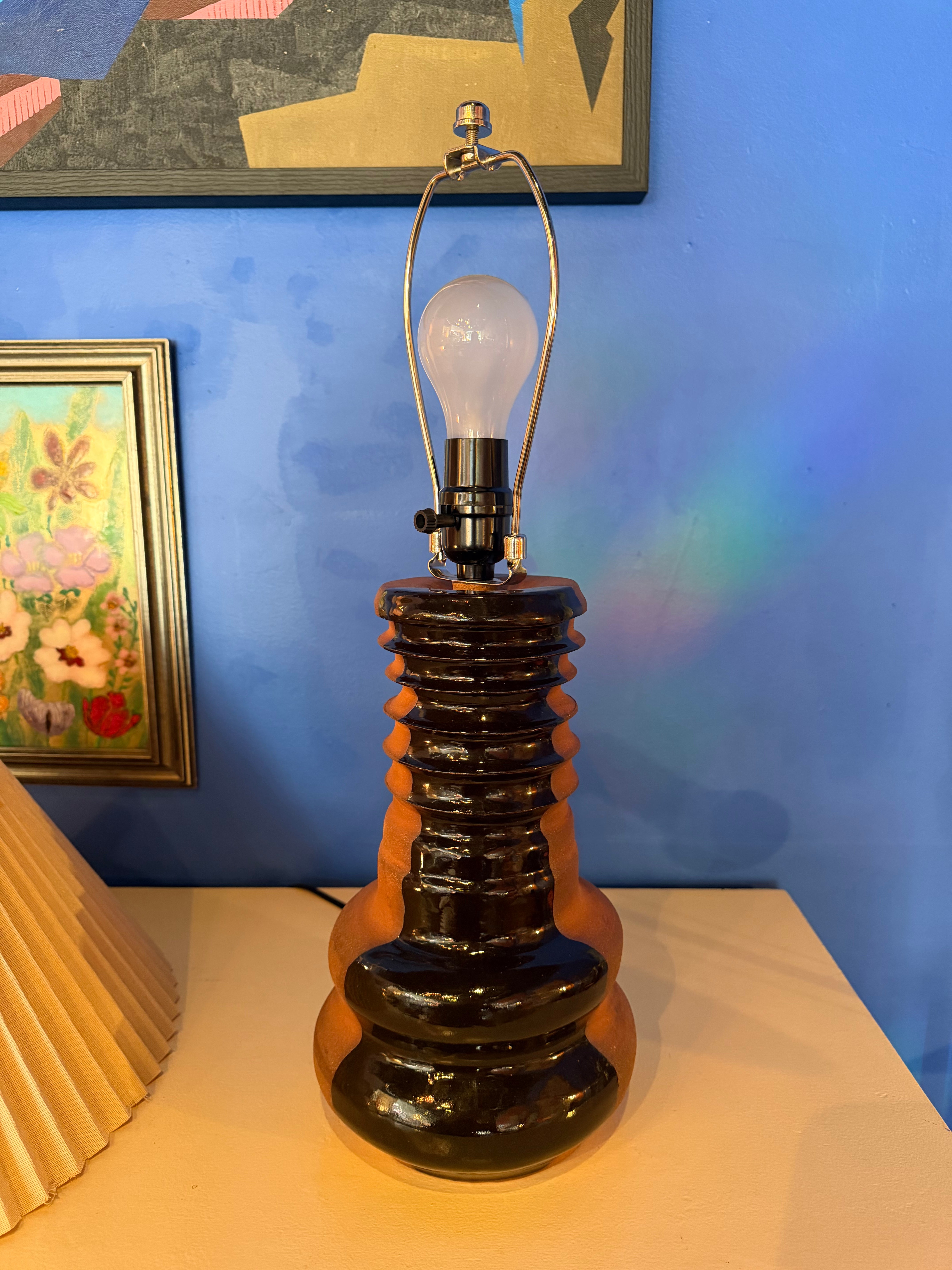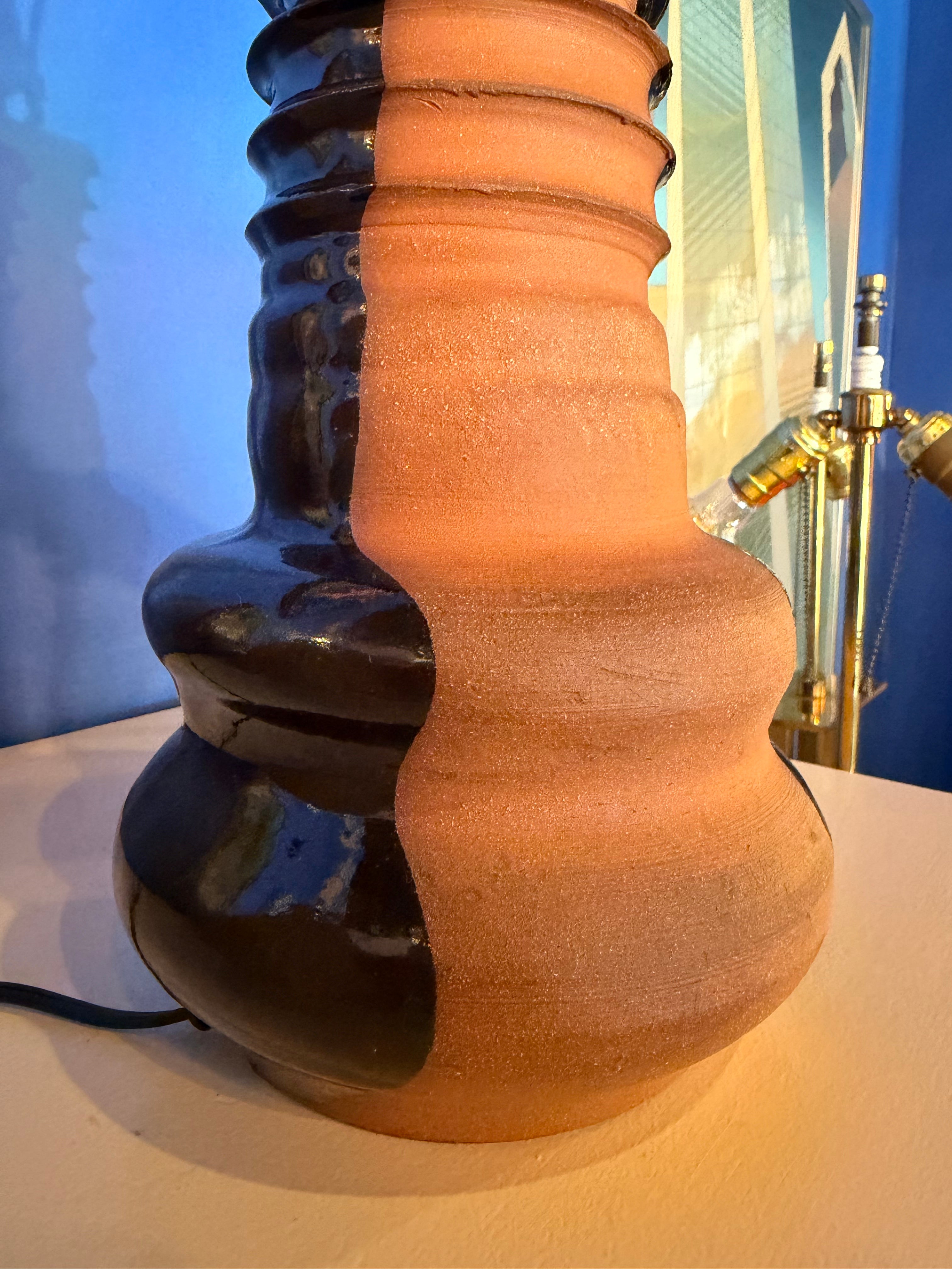 This Ouch Ceramics lamp is handmade 1 of 1 by local artist, Tanishka Chellani, from natural clay + deep brown glaze.