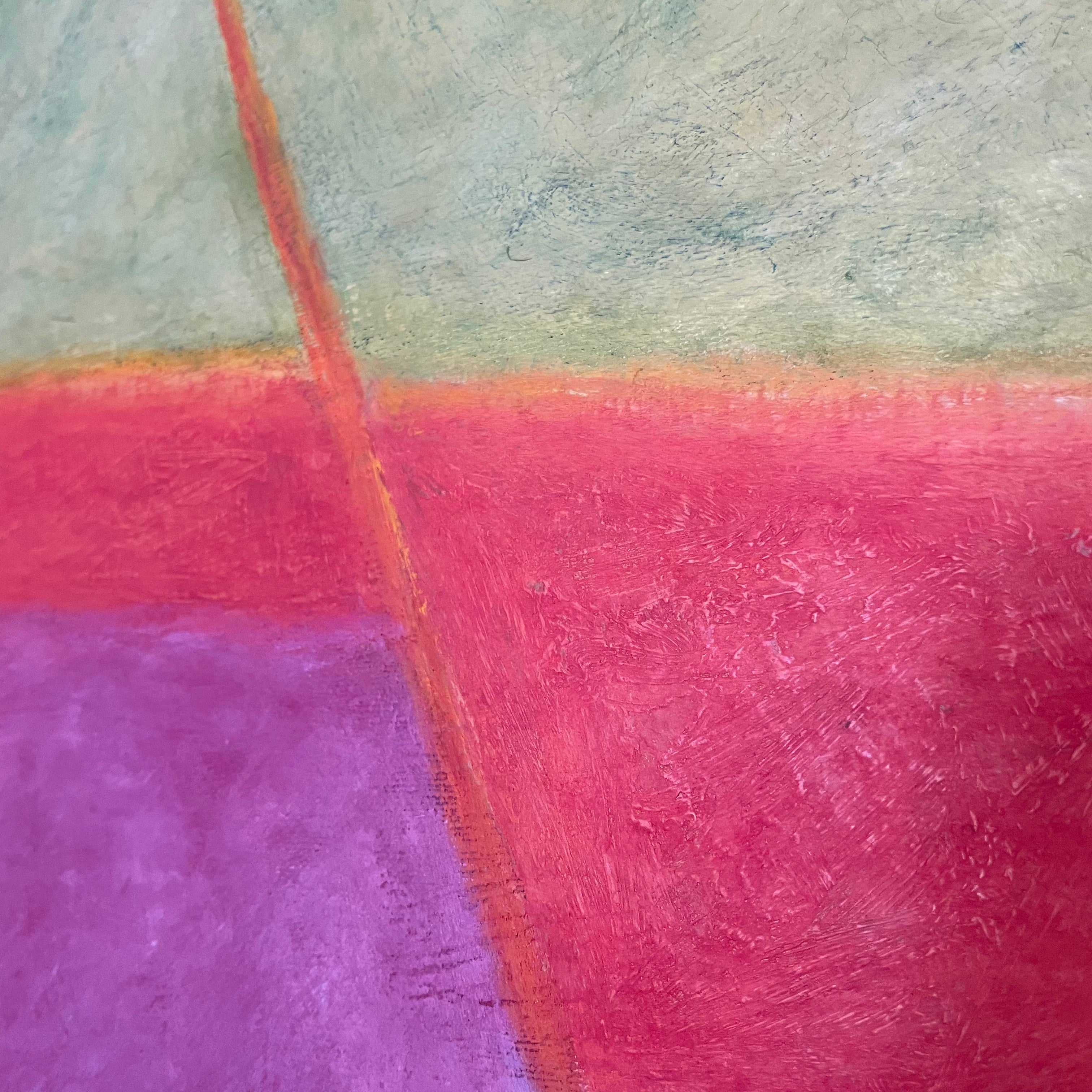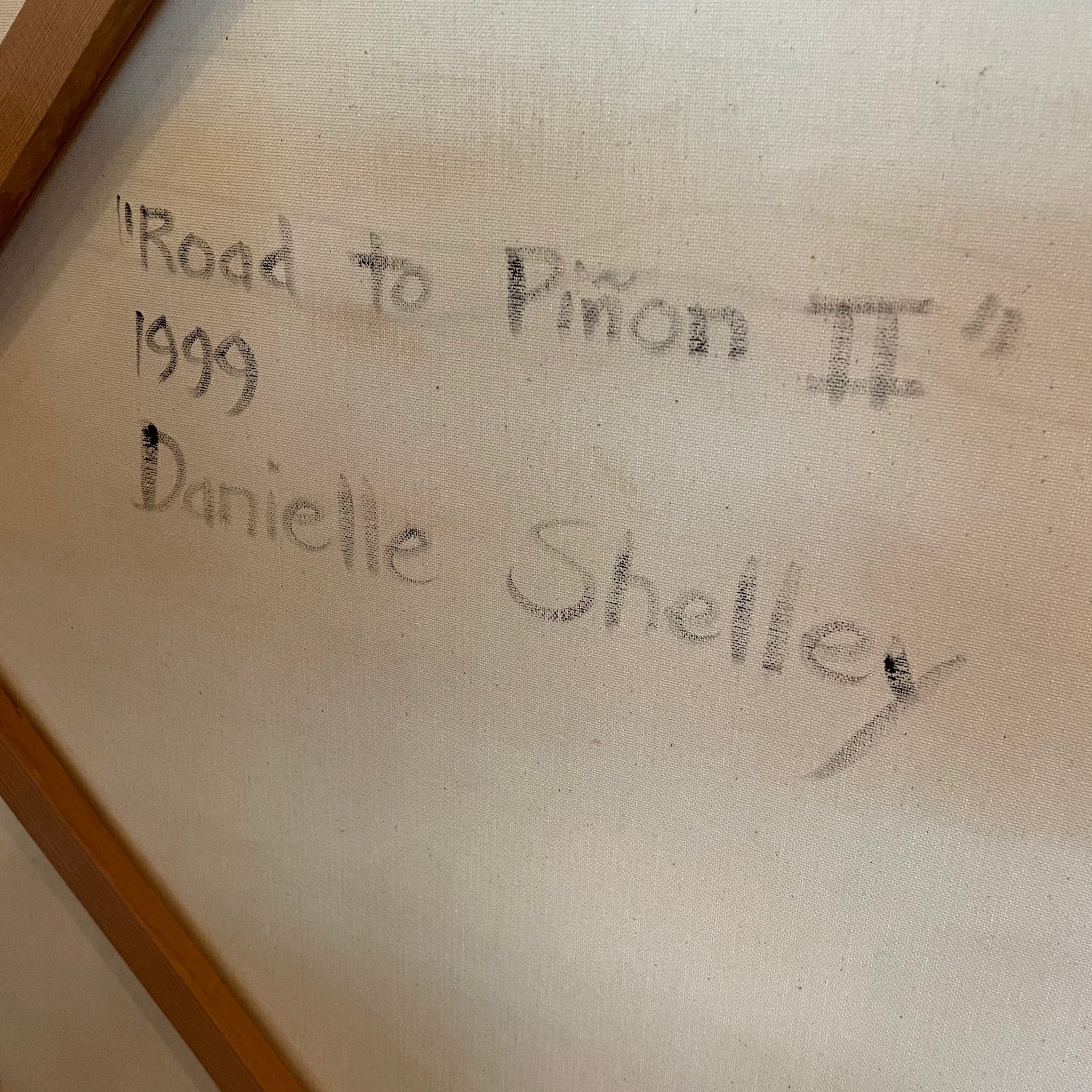 Wooden framed acrylic painting, "Road to Piñon II" by abstract artist, Danielle Shelley of Sante Fe, NM. Signed front and back / circa 1999.