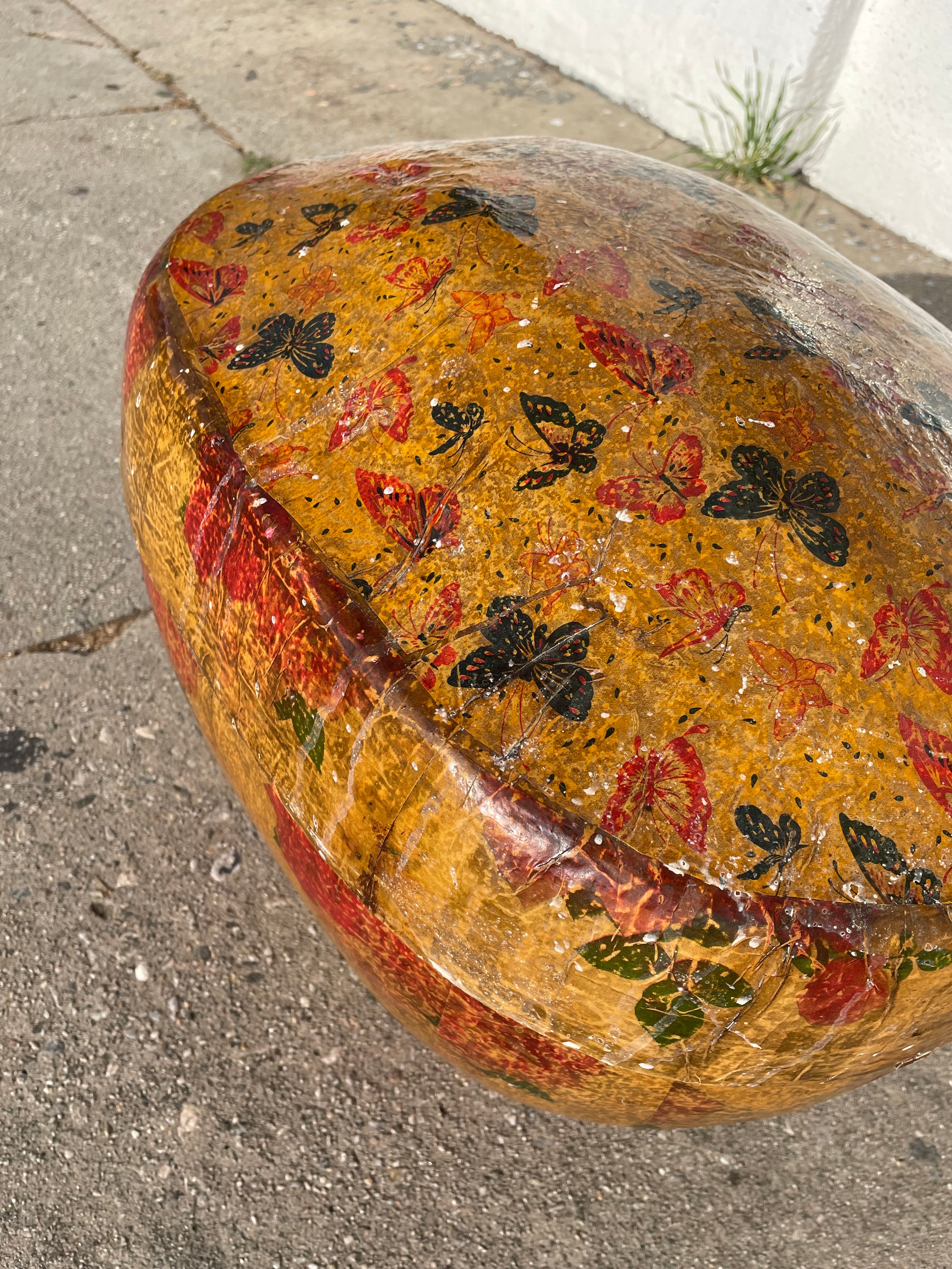 Mid-century Chinese paper mache basket with floral design on the side and a butterfly design on the lid. Very sturdy great for holding toys/laundry/blanket storage etc...