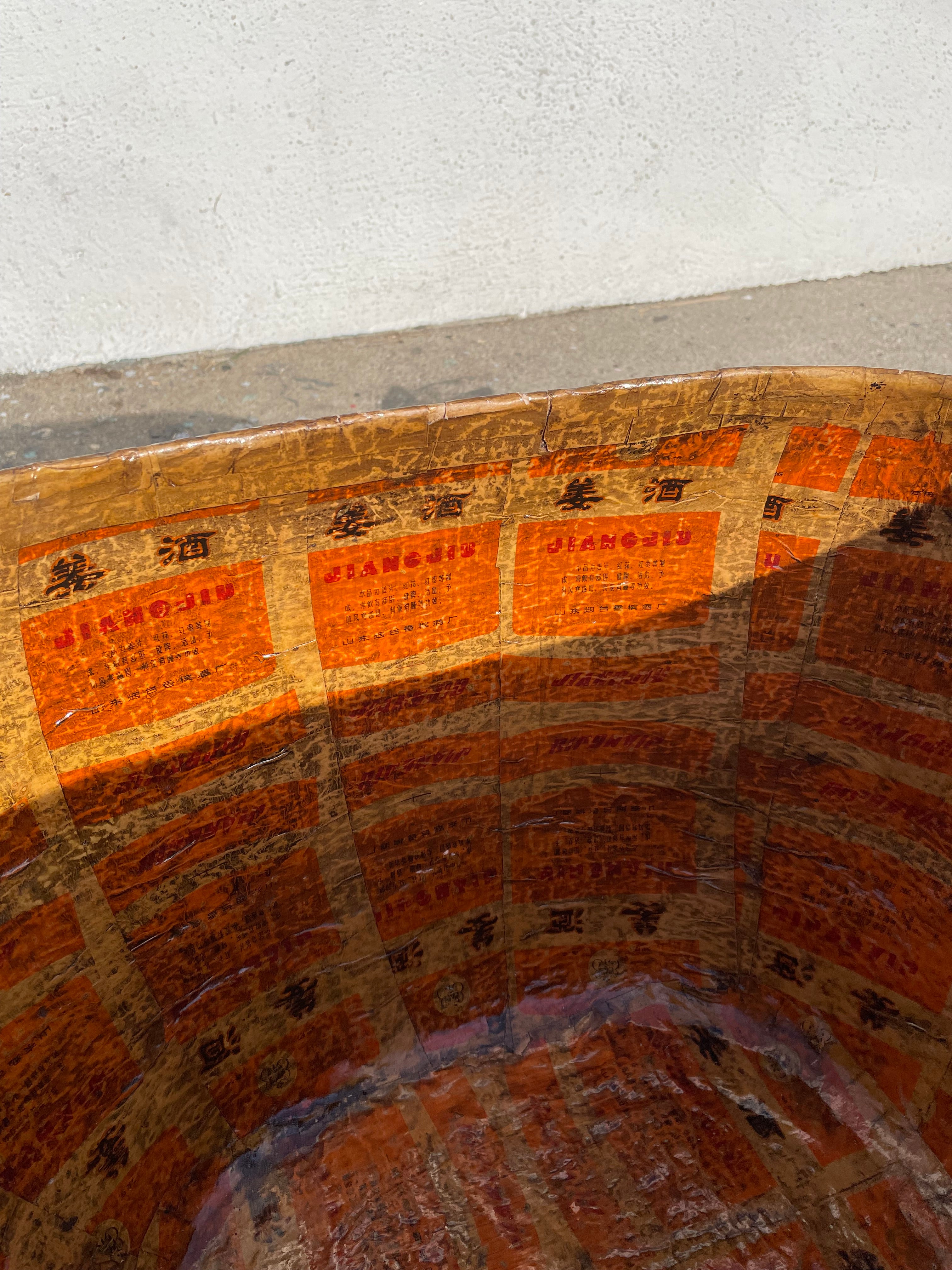 Vintage Chinese Paper Mache Floor Basket
