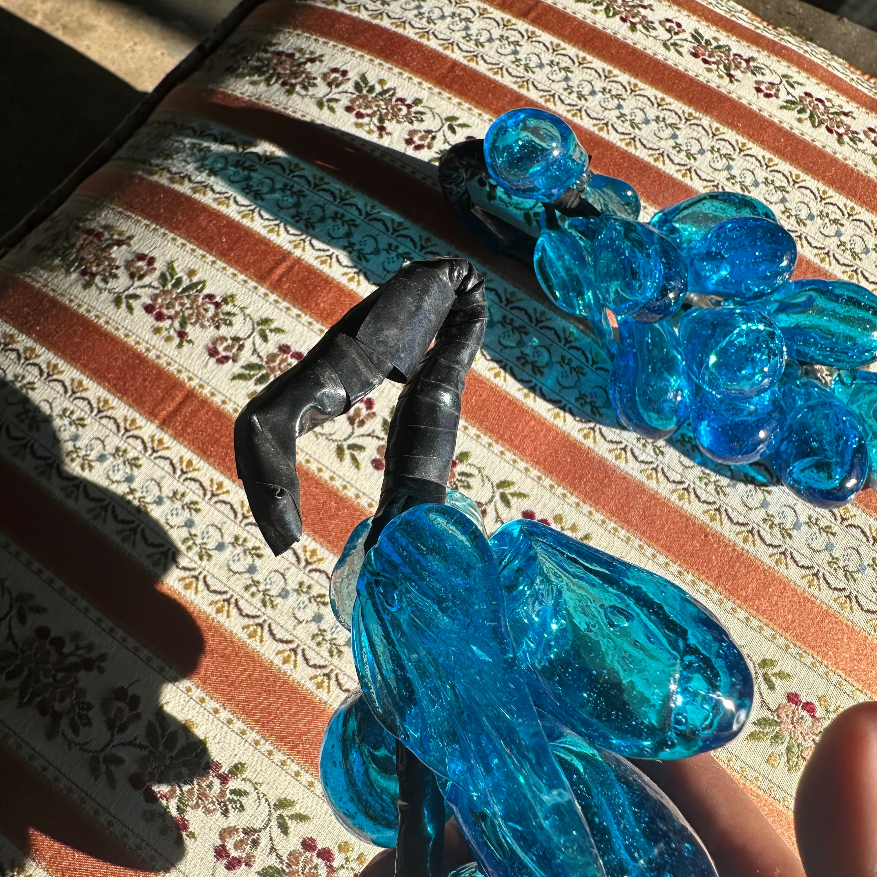 1960s gorgeous glass-blown grape bunches in teal blue. Made by Kyukyu Glass in Okinawa, Japan. Makes an elegant touch to any kitchen!