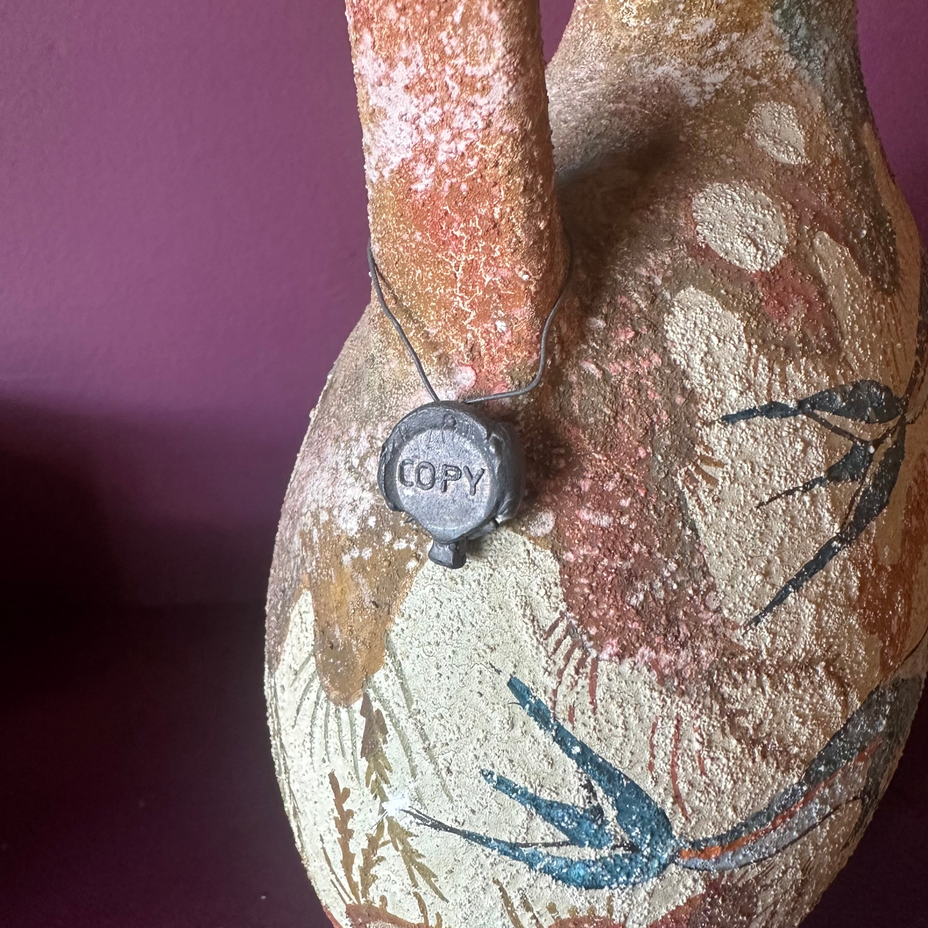 Maker's mark signed on the bottom. Age-related wear consistent with rustic aesthetic. No chips or cracks.