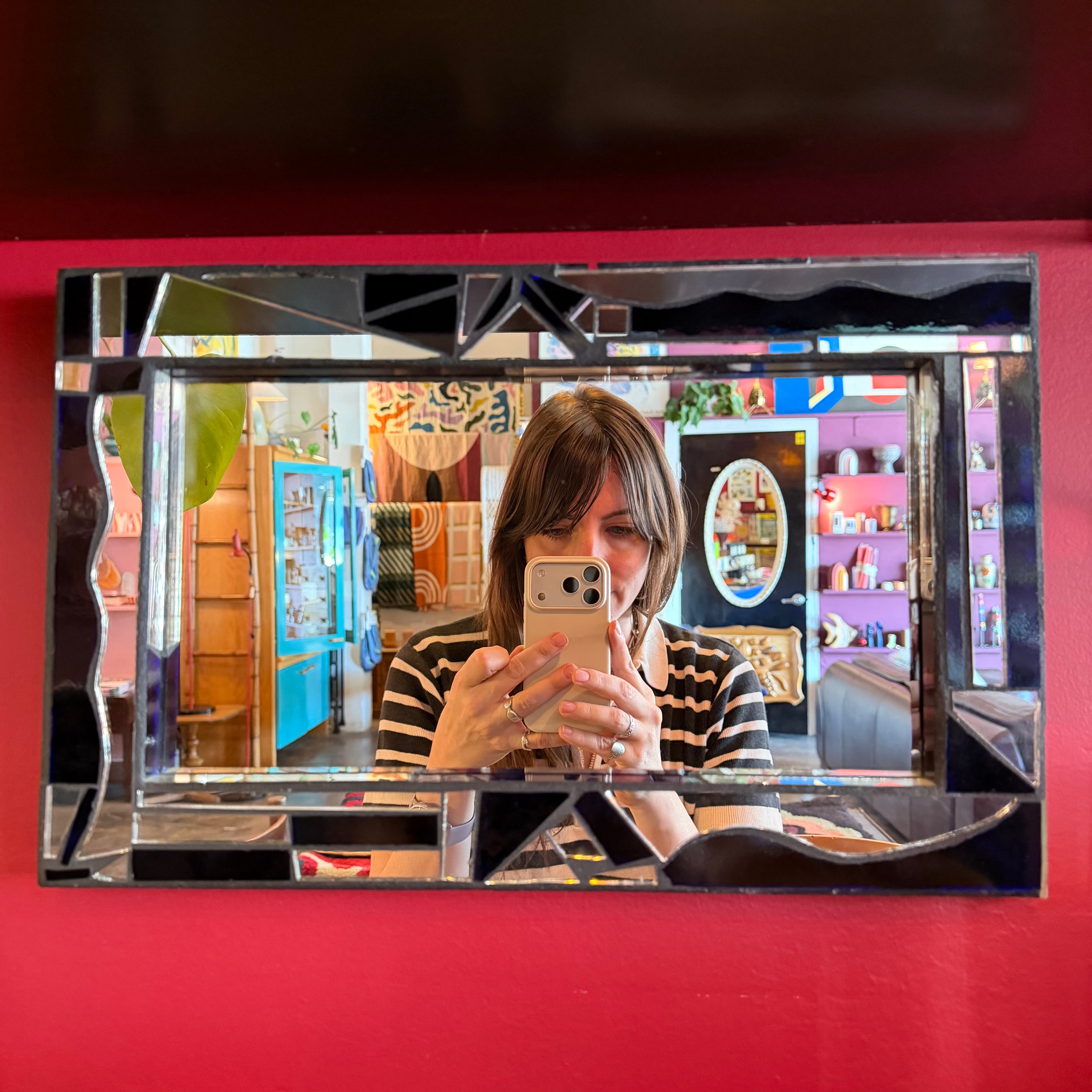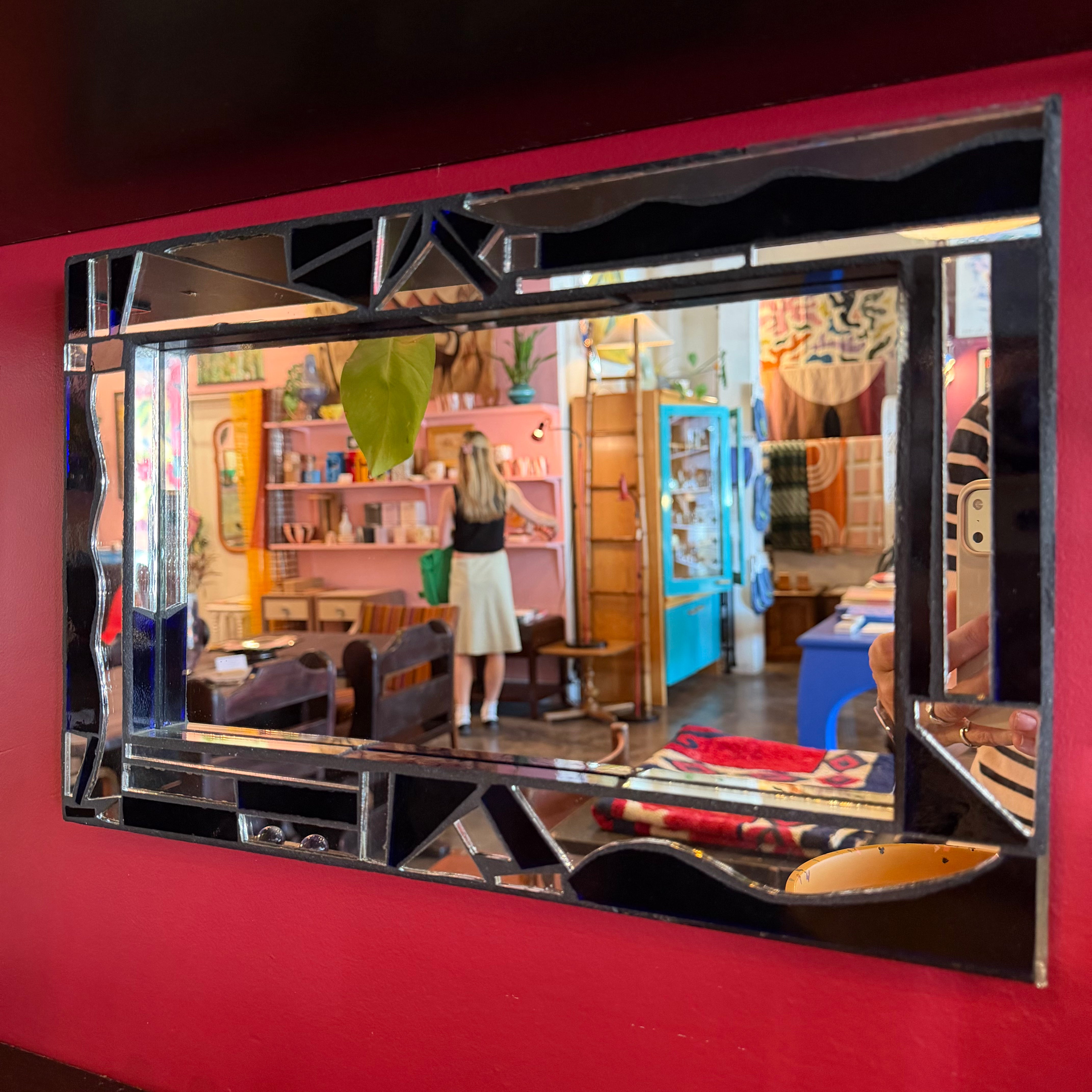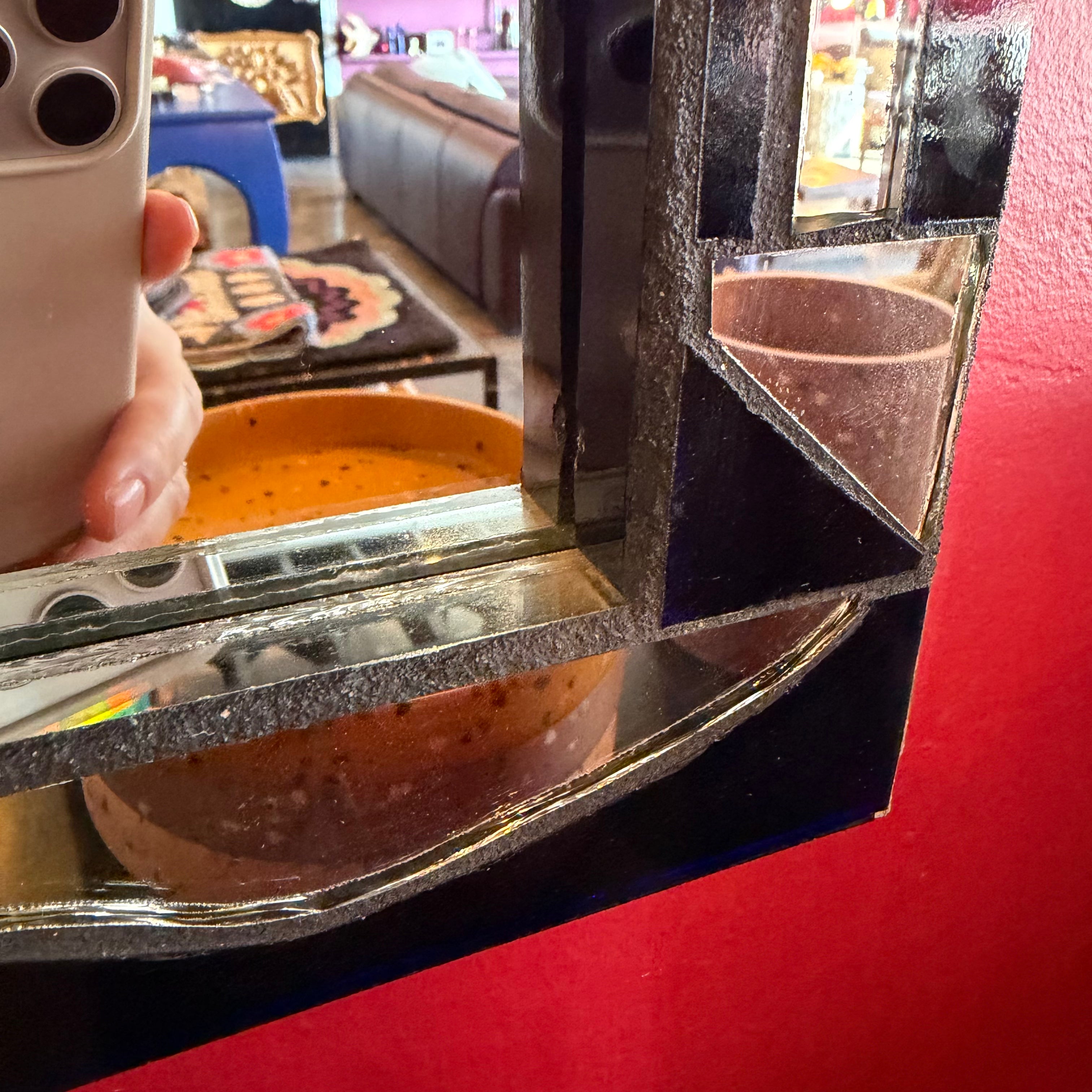 Vintage Postmodern wall mirror with frame made up of of abstract mirrored pieces.